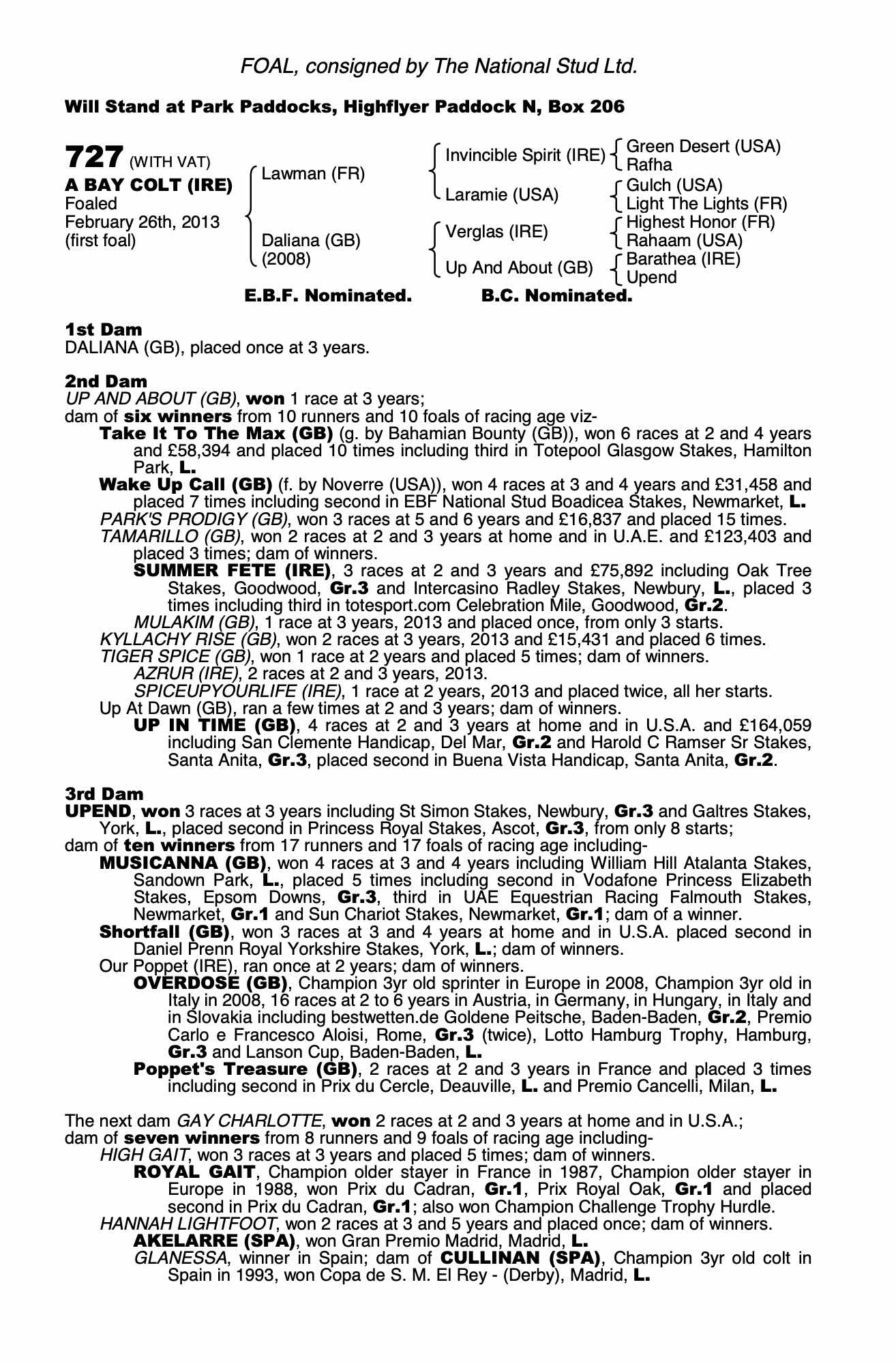 October Yearling Sale, Book 2 2014 lot 877, New England Stud=>BBA Ireland 25,000 gns