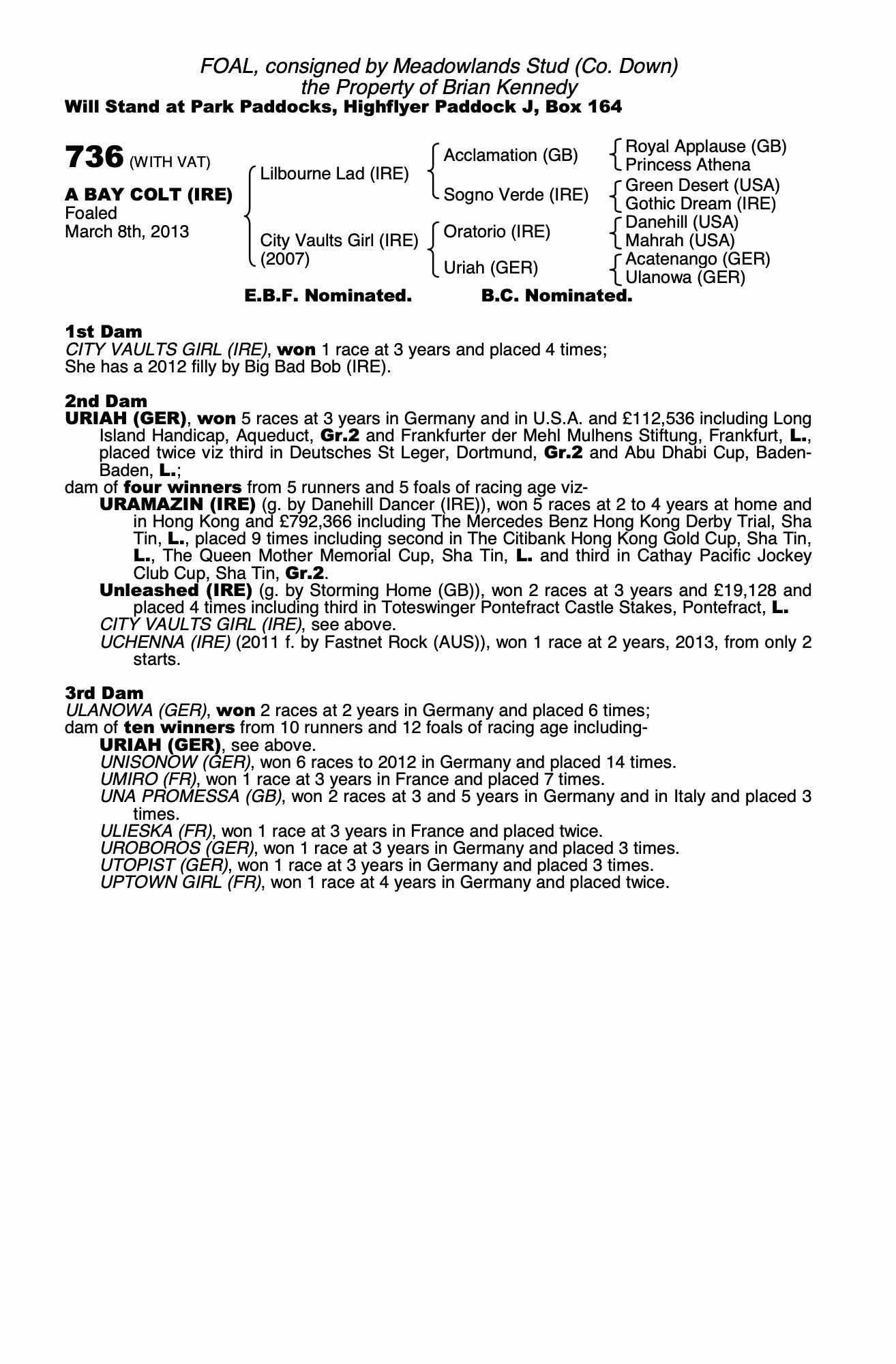 September Yearling Sale 2016 lot 514 F. by Casamento (IRE) 2015, Lewinstown Farm=>Razza Latina €17,000