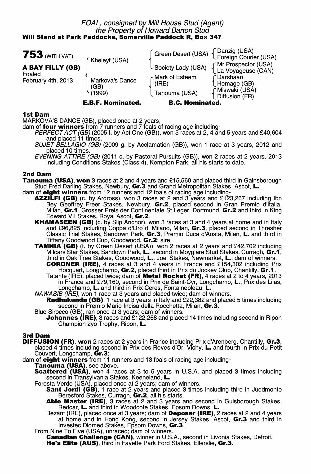 Guineas Horses in Training Sale 2014 lot 41 Evening Attire (GB) (G. by Pastoral Pursuits (GB)), Evergreen Stables=>William Stone 1,500 gns