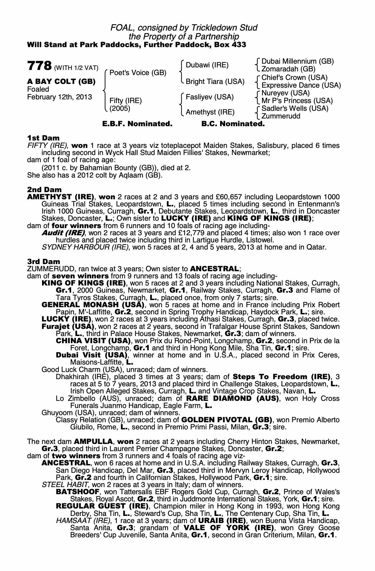 October Yearling Sale, Book 2 2013 lot 1277 C. by Aqlaam (GB) 2012, Hillwood Stud=>Blandford Bloodstock 22,000 gns