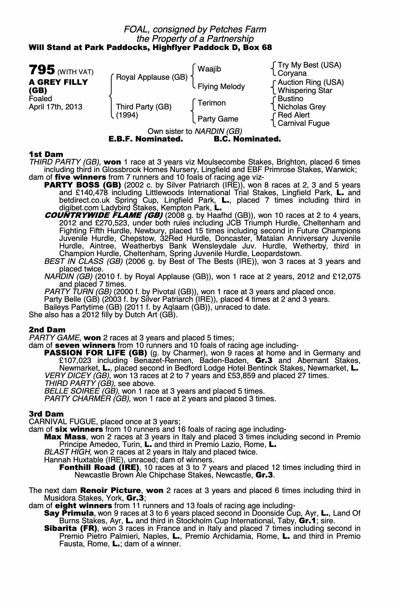 February Sale 2014 lot 59 Nardin (GB) (F.), Shadwell Stud=>Petches Farm 32,000 gns