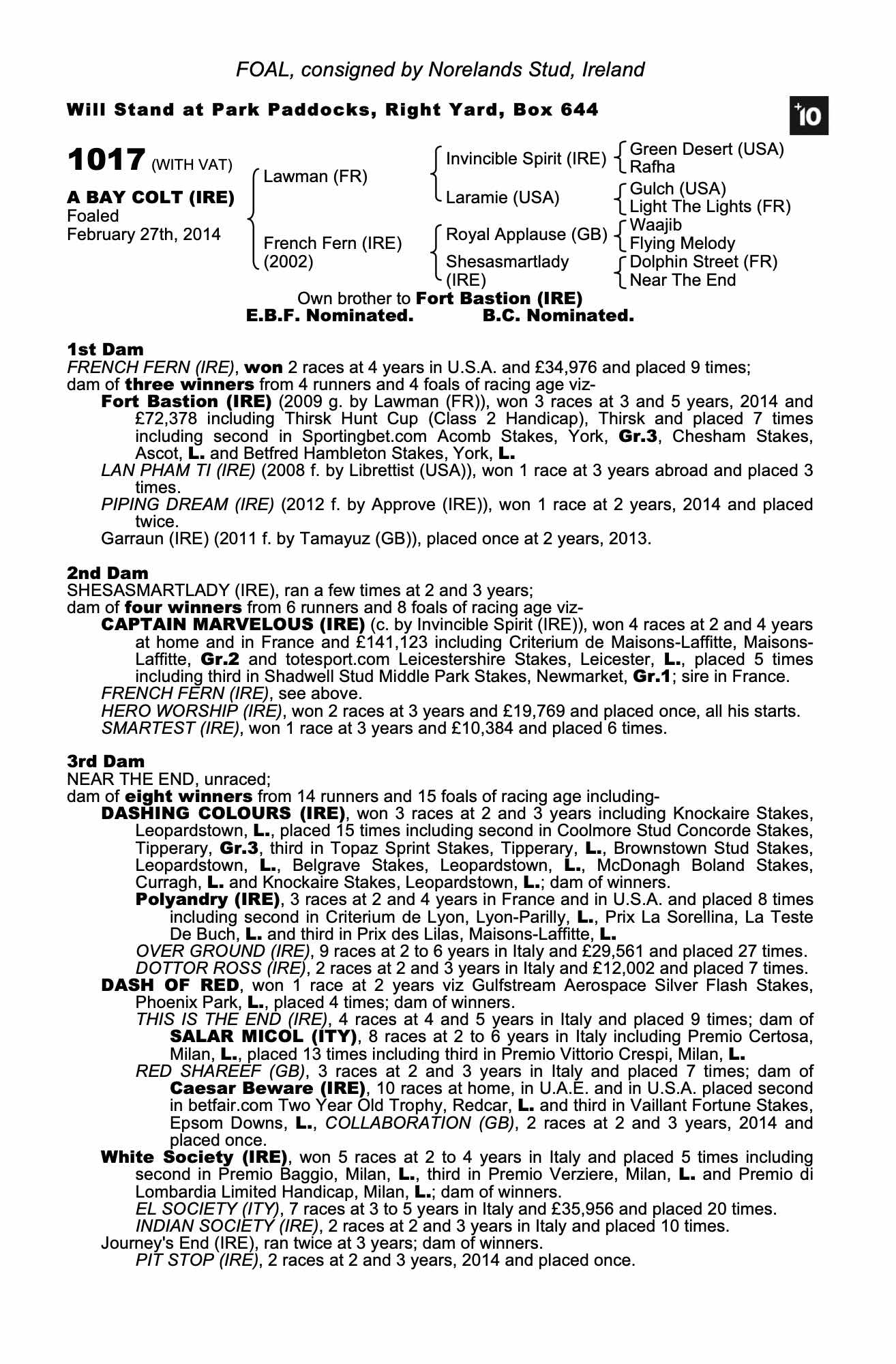 December Foal Sale 2017 lot 743 C. by Make Believe (GB) 2017, Norelands Stud, Ireland=>Warwickshire Bloodstock 38,000 gns