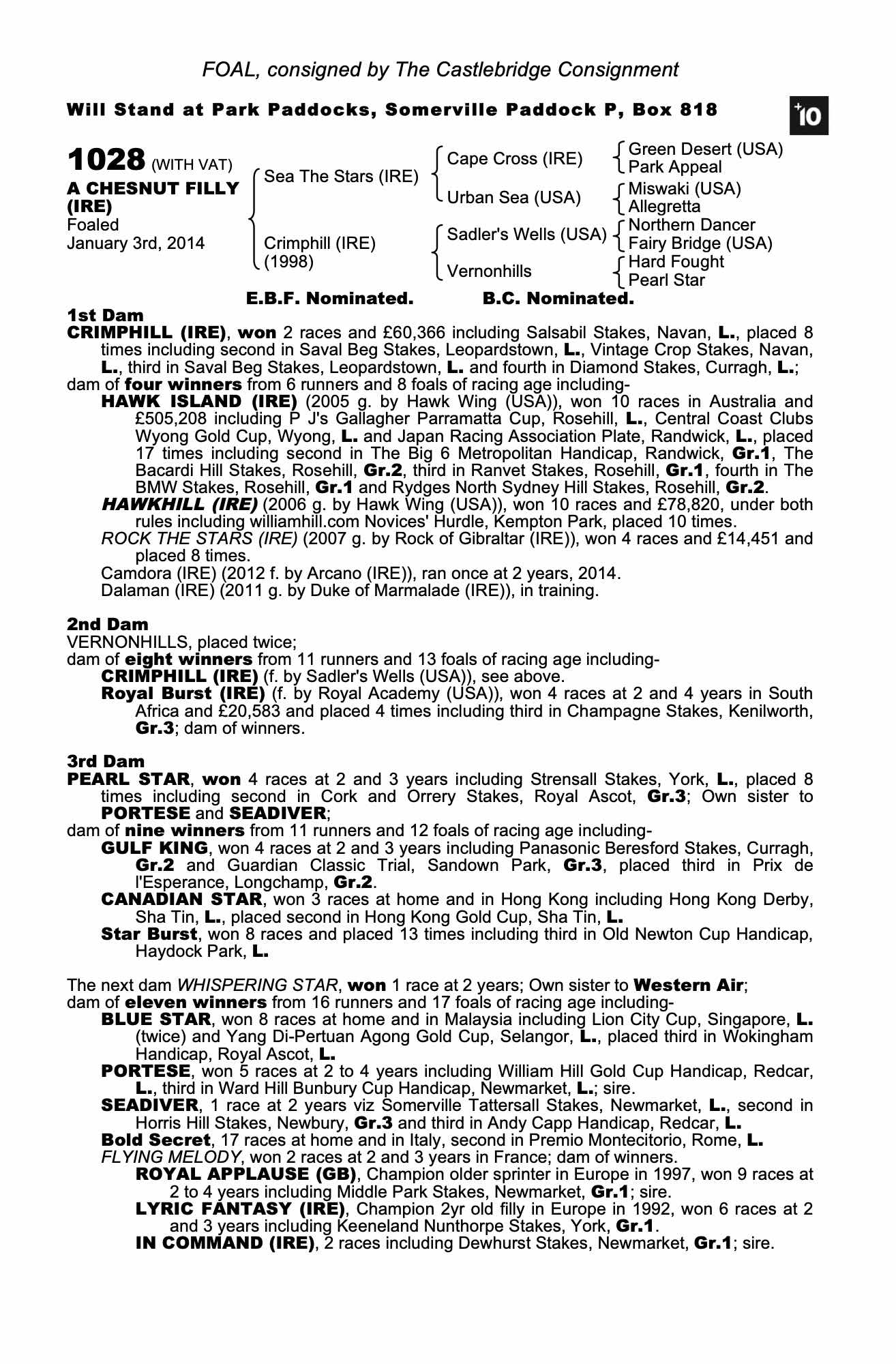 Craven Breeze Up Sale 2014 lot 79 F. by Arcano (IRE) 2012, Kilminfoyle House Stud, Ireland (Agent)=>Kern/Lillingston Association 120,000 gns
