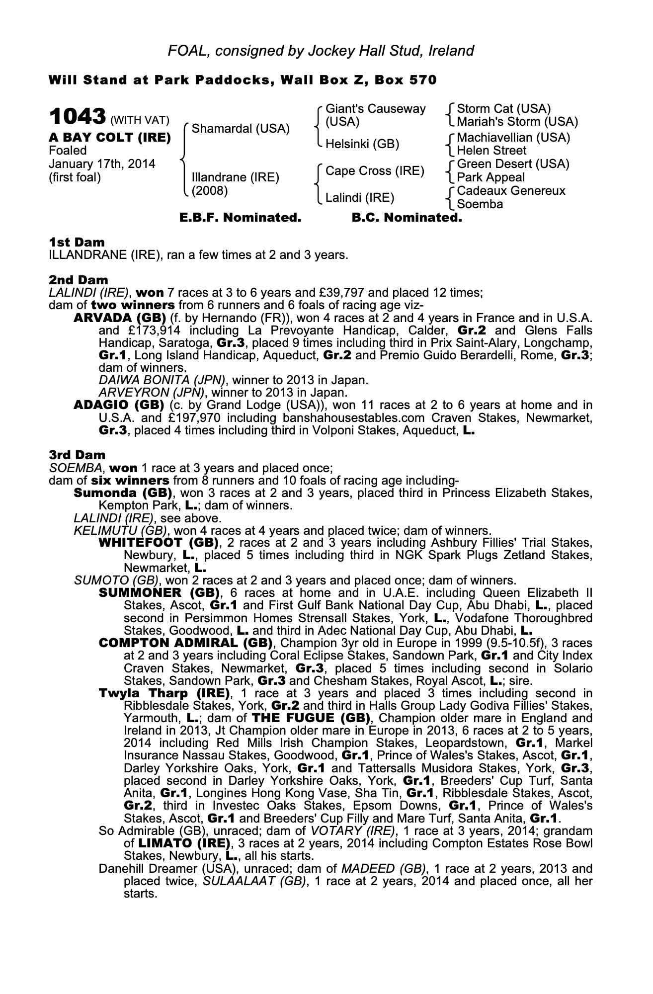 Ascot March Sale 2017 lot 55, Godolphin=>Elias Kritikos £3,500