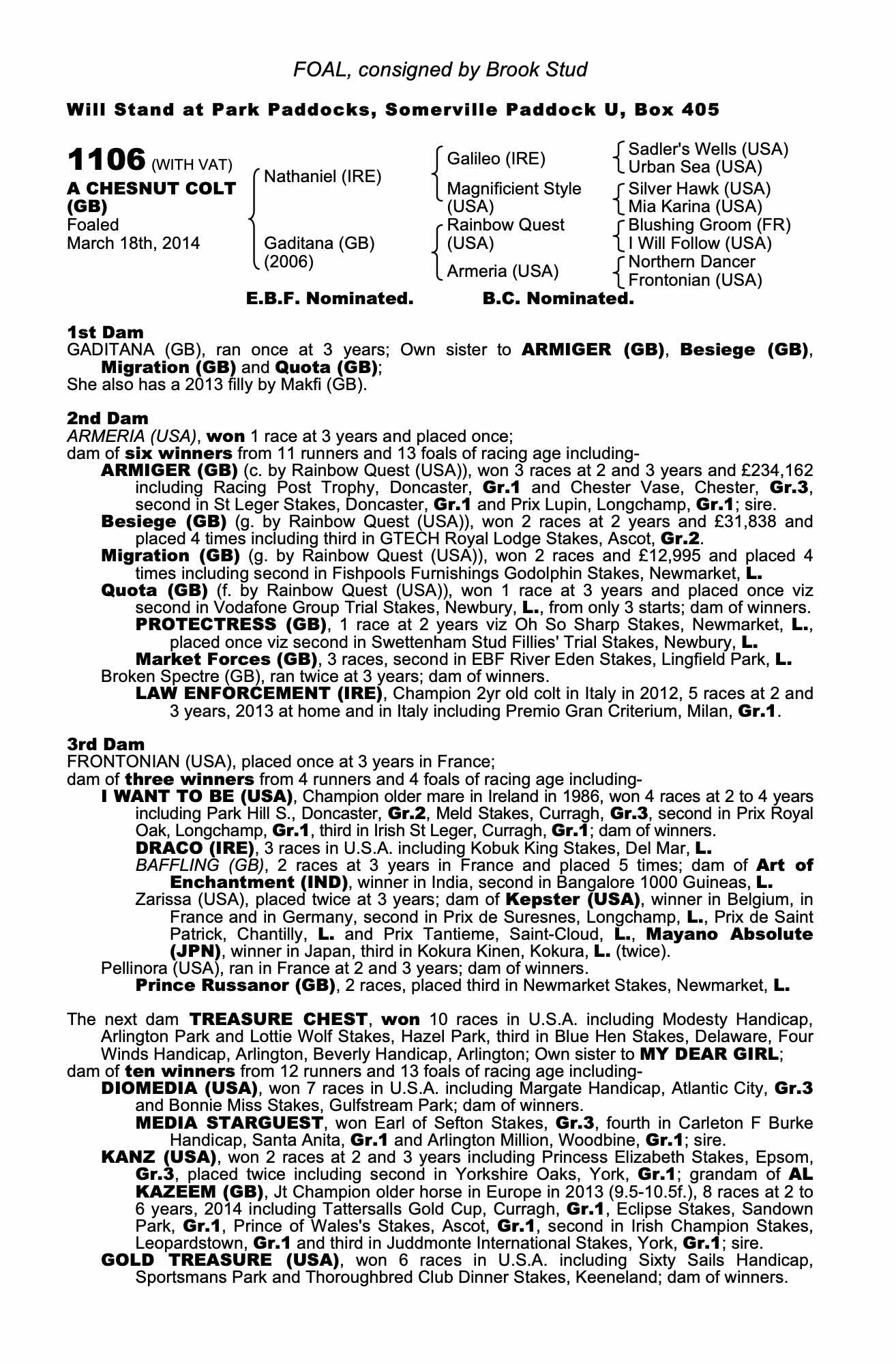December Yearling Sale 2014 lot 217 F. by Makfi (GB) 2013, Brook Stud=>BBA Ireland 50,000 gns