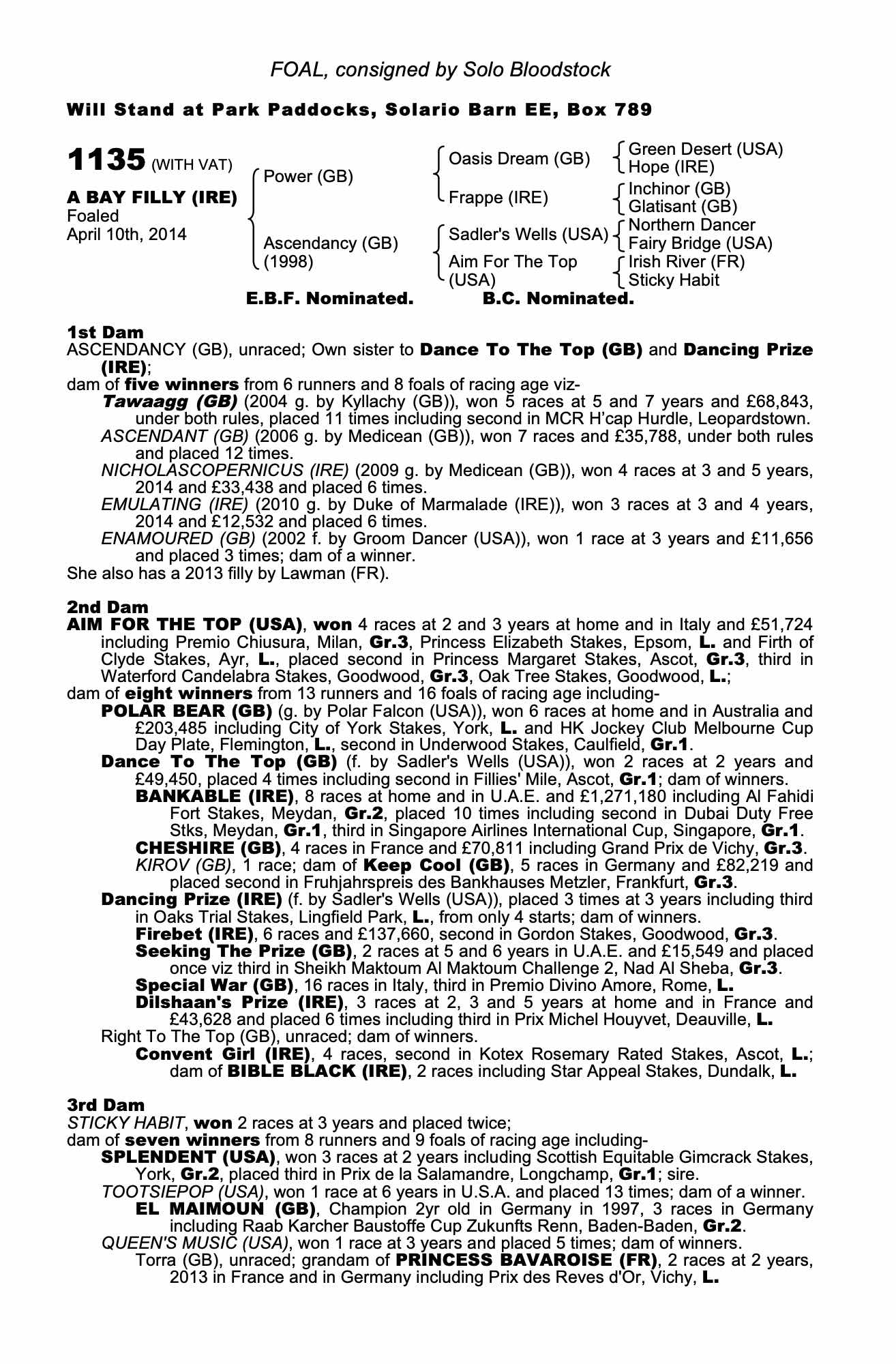 October Yearling Sale, Book 2 2014 lot 765 F. by Lawman (FR) 2013, Platinum Bloodstock=>Vendor 20,000 gns
