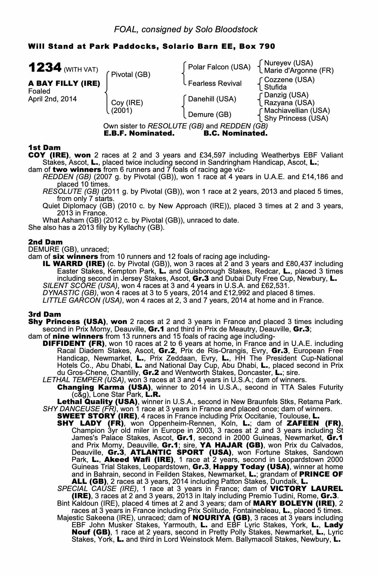 Consignor: Solo Bloodstock