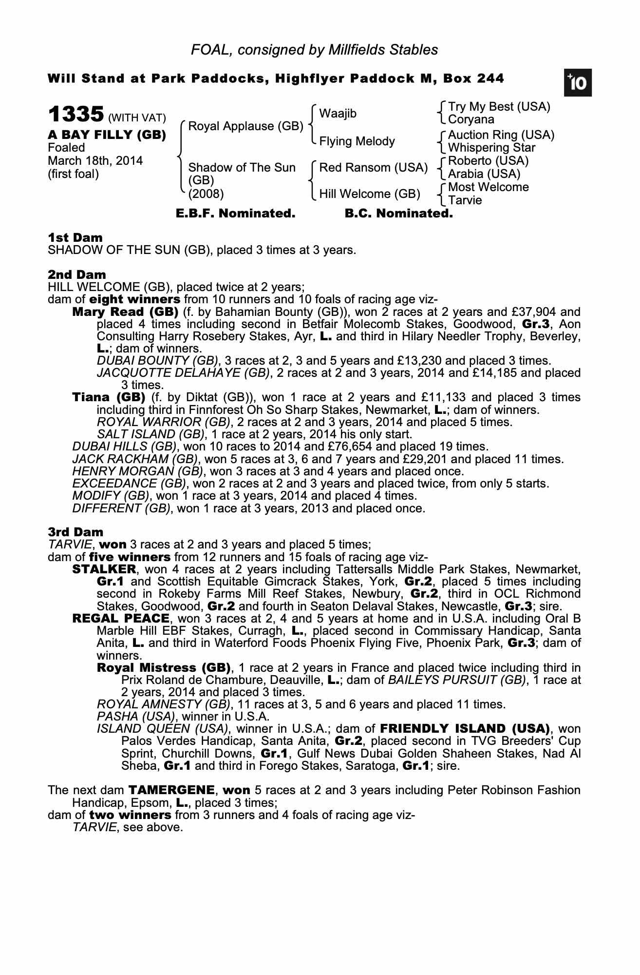 Online Sale - 12th February 2025 lot 46 Shadow On The Hill (GB) (F. by Due Diligence (USA)), Salcey Forest Stud (Agent)=>Lot Not Sold 900 gns