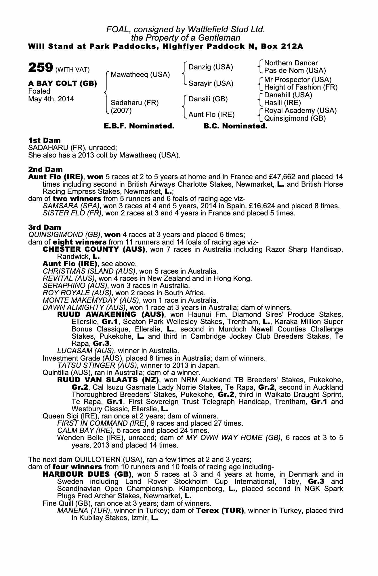 Consignor: Wattlefield Stud Ltd.