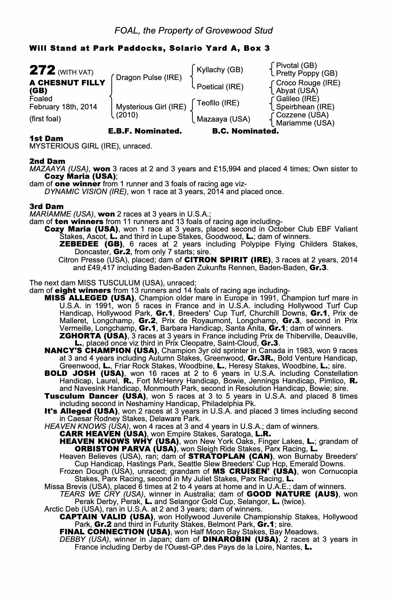 Consignor: Grovewood Stud