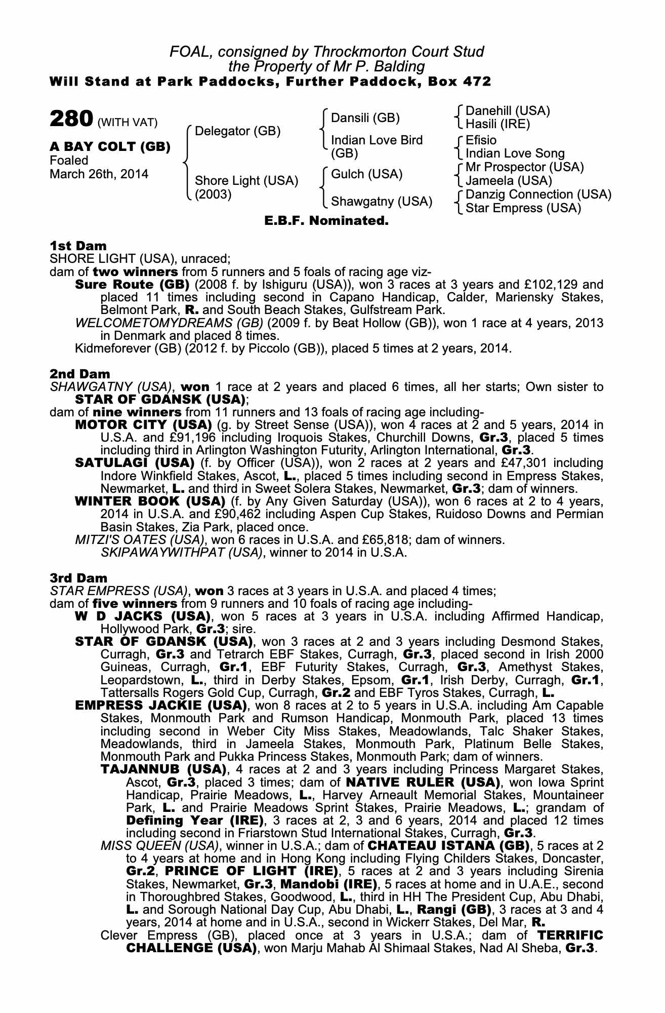 Consignor: Throckmorton Court Stud
