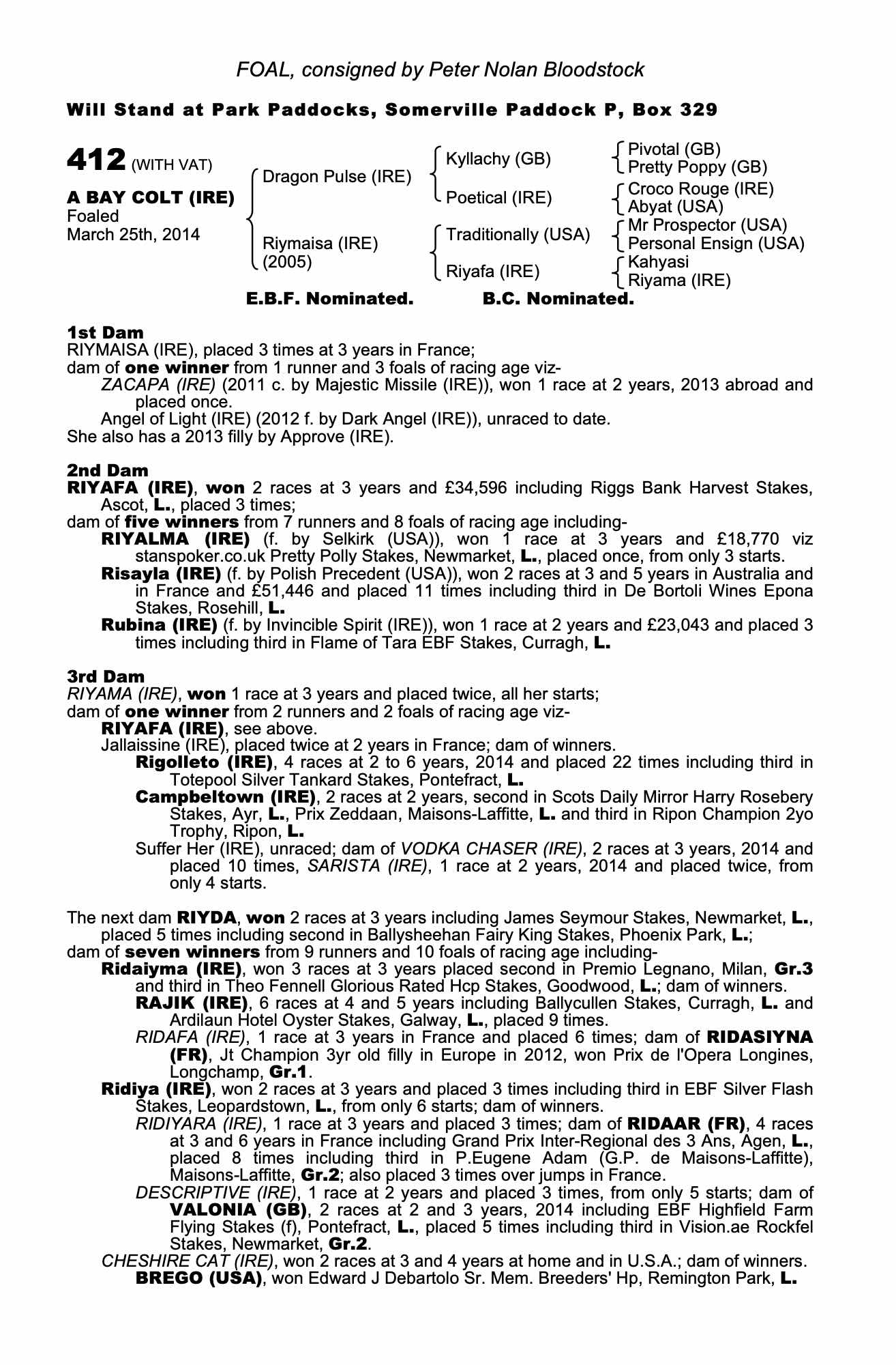 Craven Breeze Up Sale 2014 lot 2 F. by Dark Angel (IRE) 2012, Knockatrina House, Ireland=>Vendor 18,000 gns