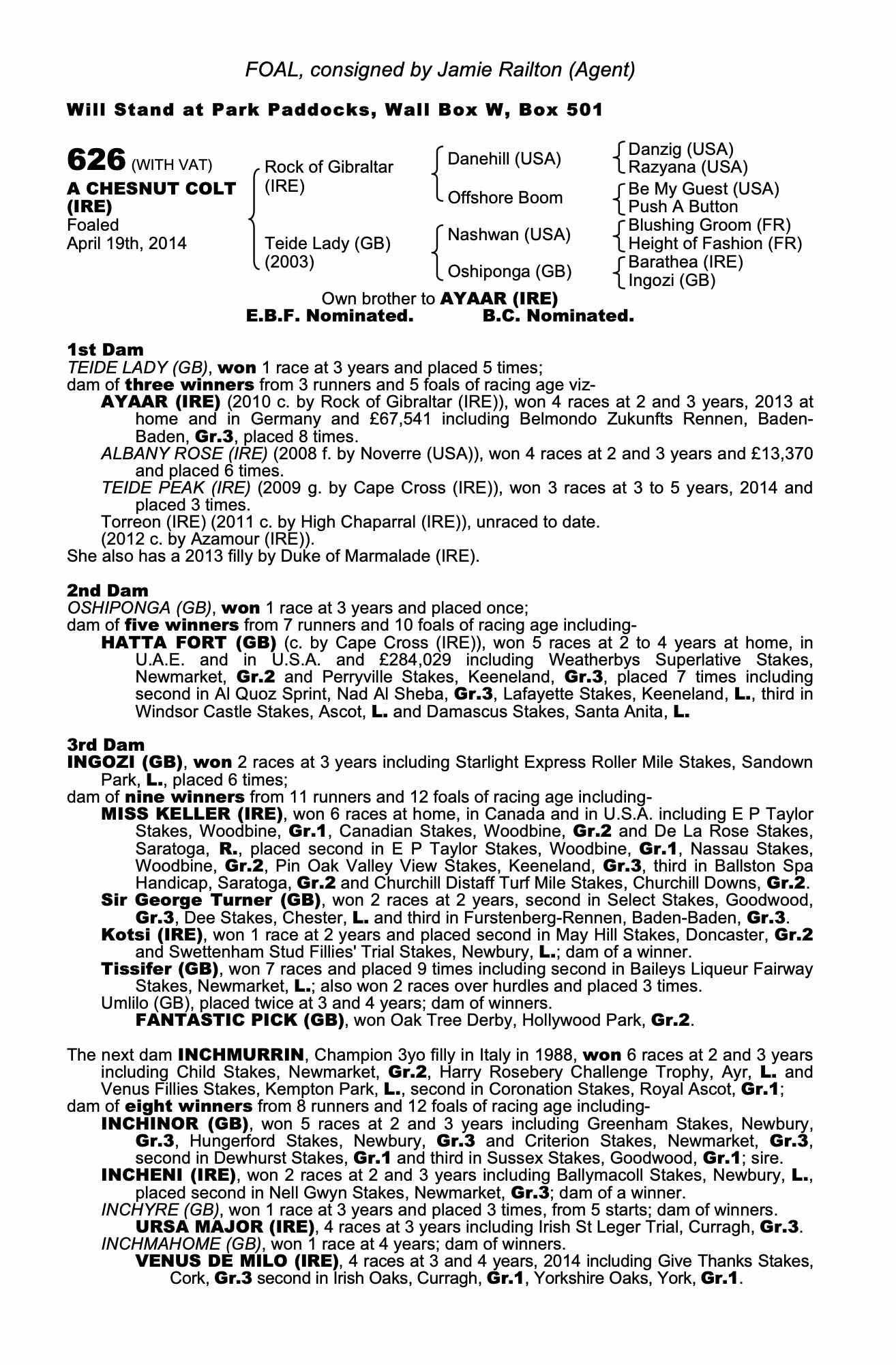 October Yearling Sale, Book 2 2014 lot 628 F. by Duke of Marmalade (IRE) 2013, Jamie Railton (Agent)=>SackvilleDonald 20,000 gns