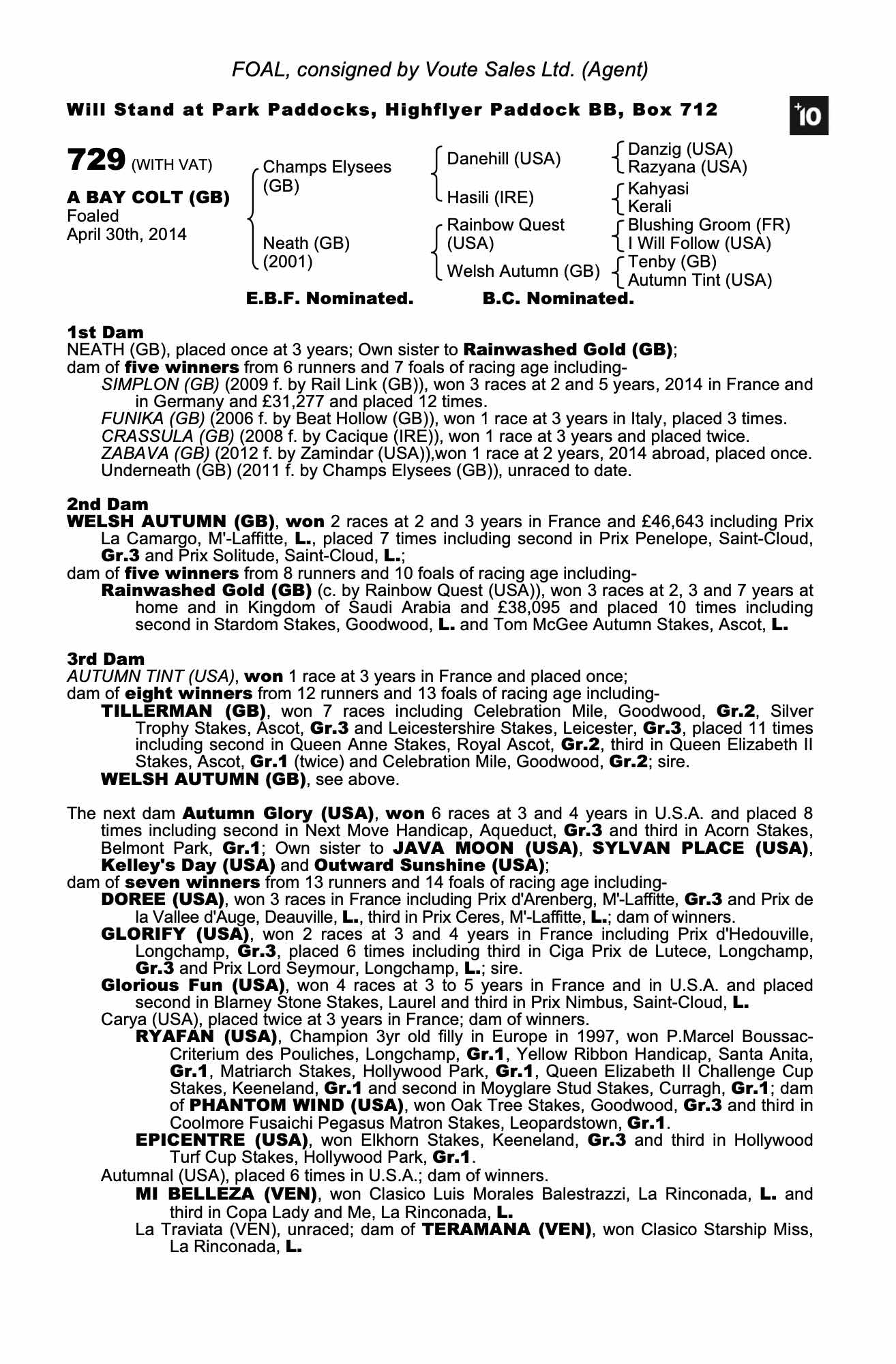 Consignor: Voute Sales Ltd. (Agent)