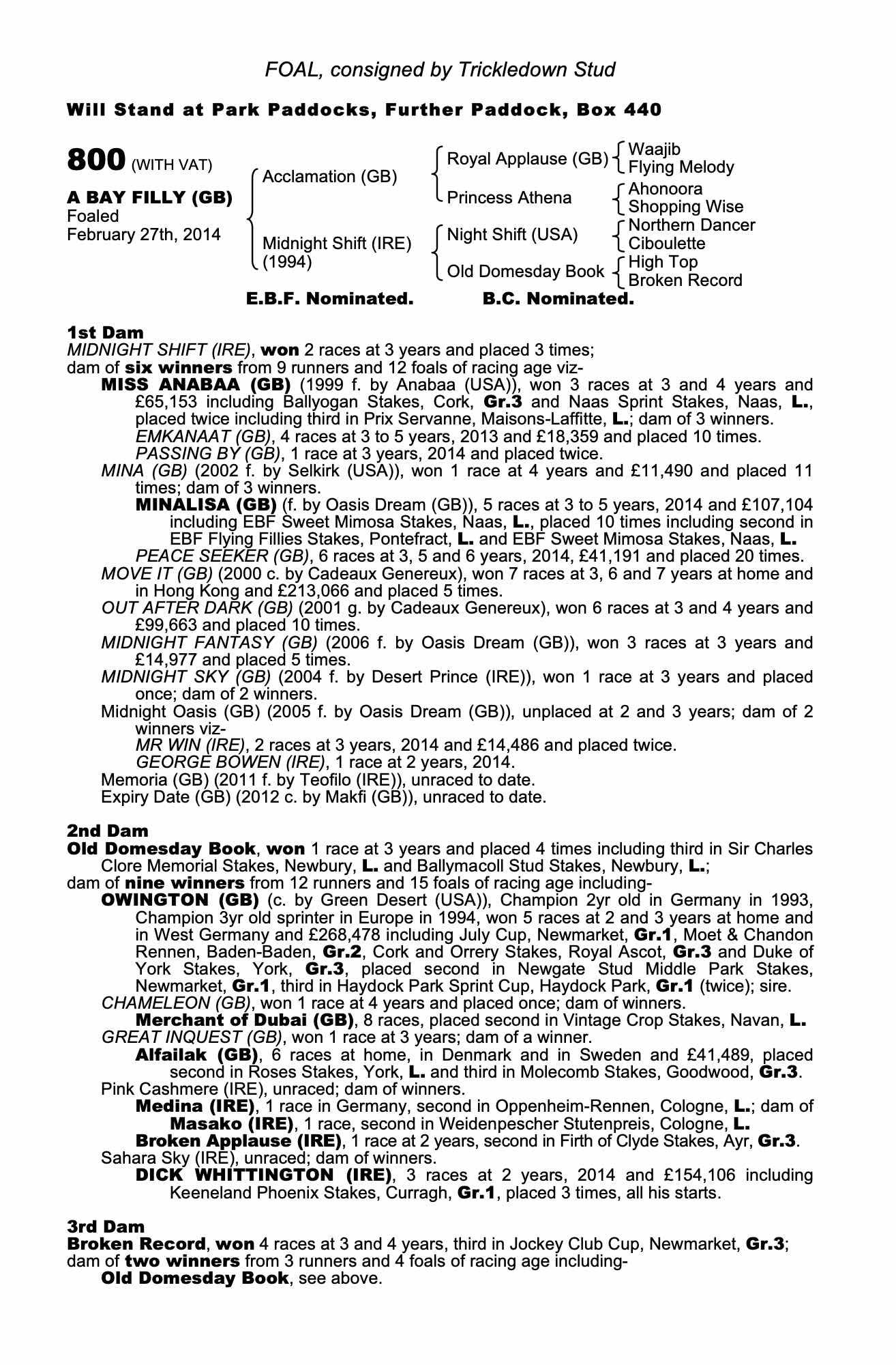 February Sale 2021 lot 14 Midnight Fantasy (GB) (M. by Oasis Dream (GB)), Trickledown Stud=>Universal Stud 800 gns
