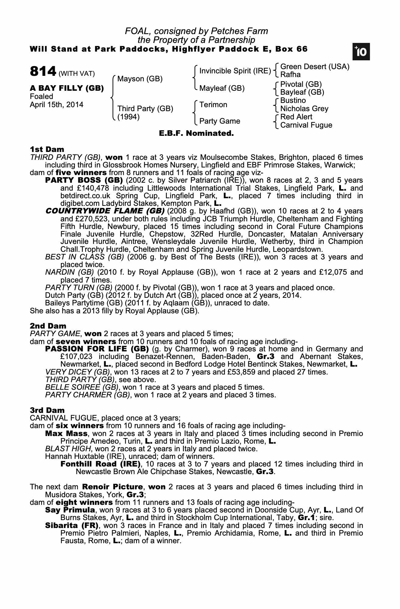 February Sale 2016 lot 198 First Party (GB) (F. by Royal Applause (GB)), Kingsley House Stables (M. Johnston)=>Yellowford Farm 10,500 gns
