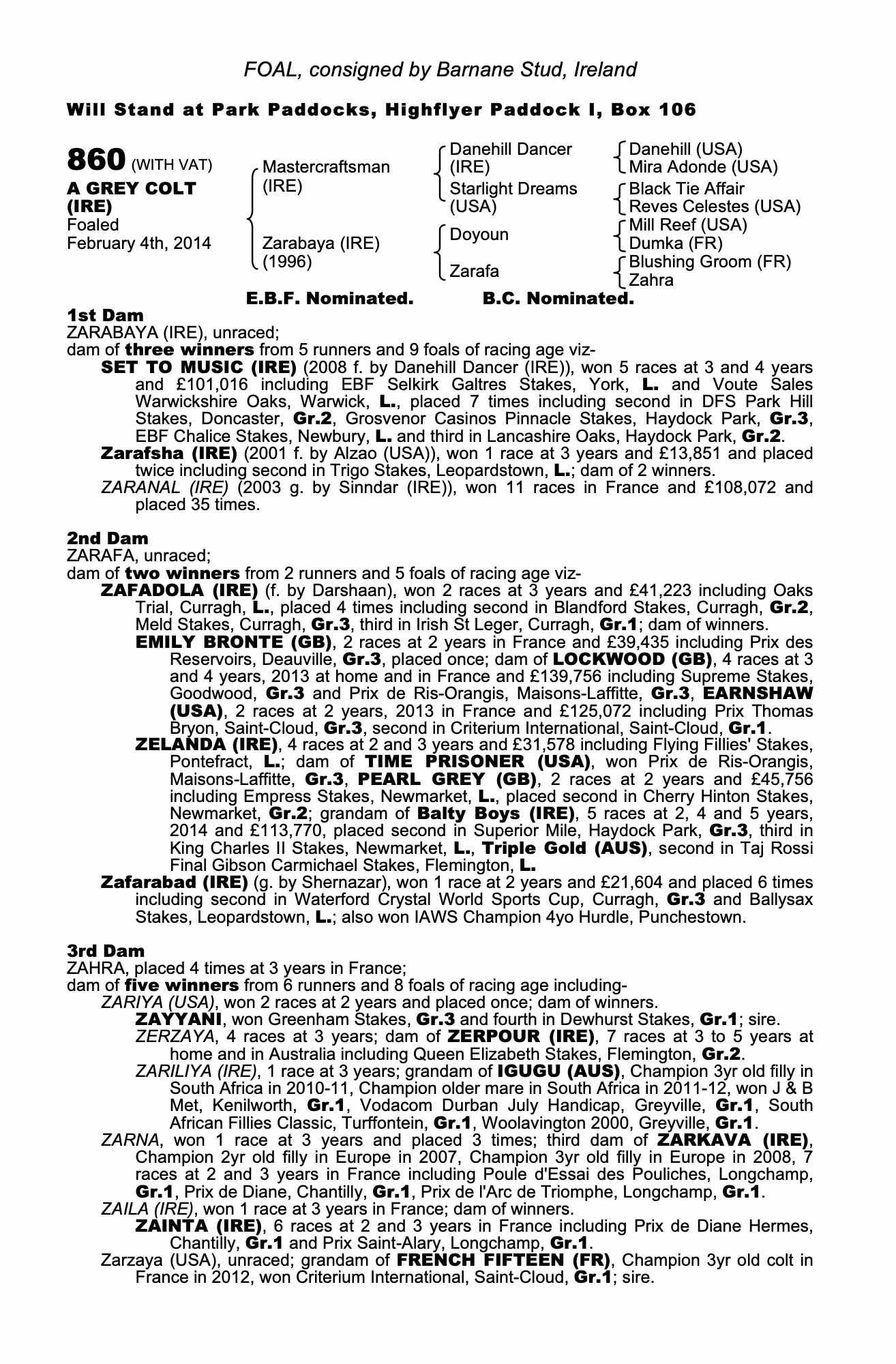 Consignor: Barnane Stud, Ireland
