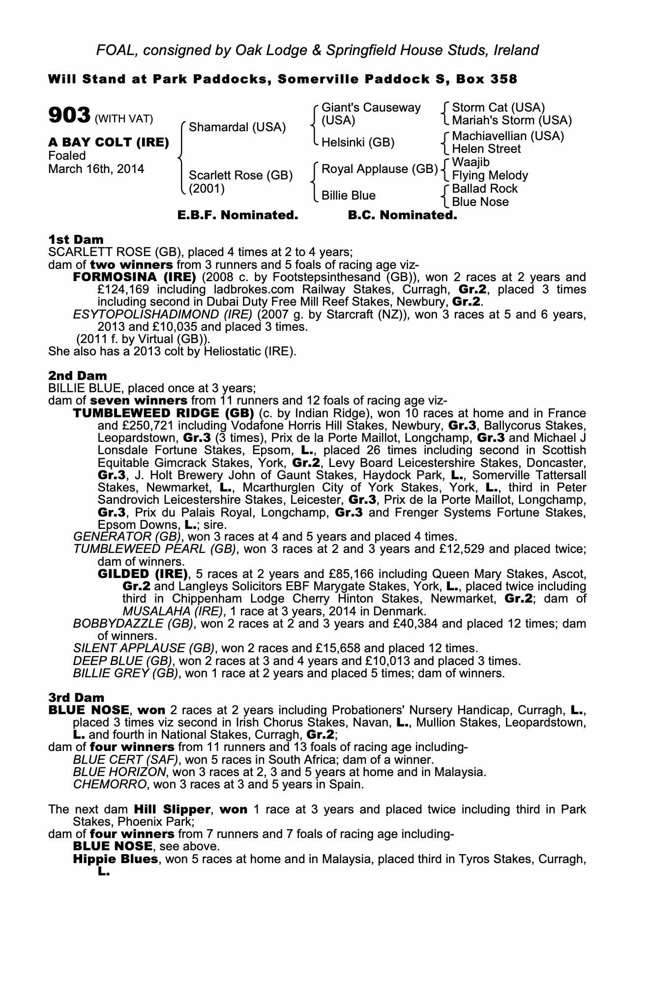 Consignor: Oak Lodge & Springfield House Studs, Ireland