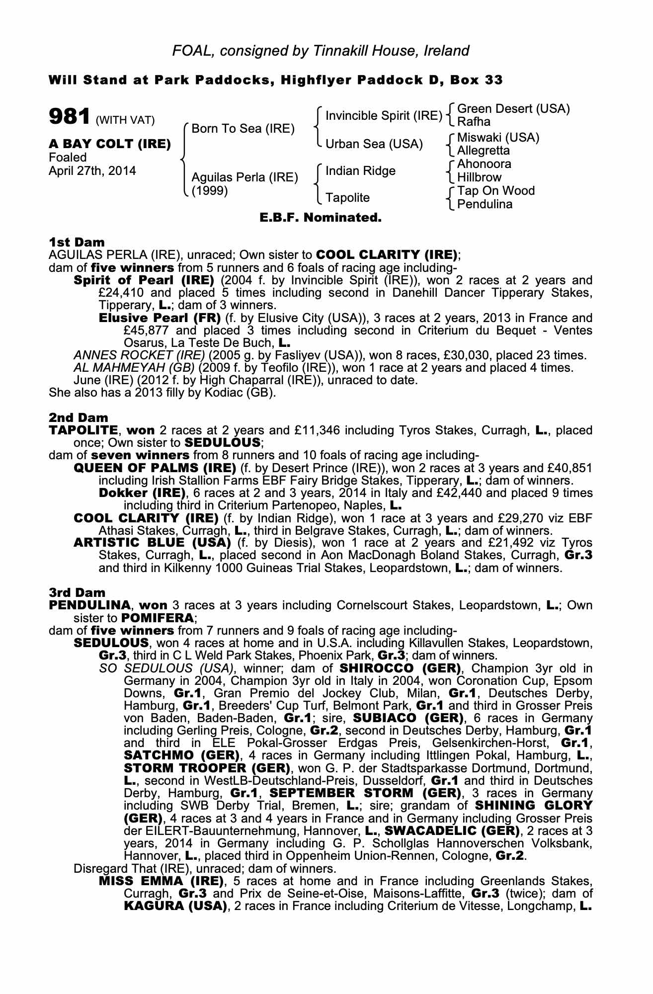 December Yearling Sale 2015 lot 195, Mount Coote Stud, Ireland=>Jesus Lopez 5,000 gns