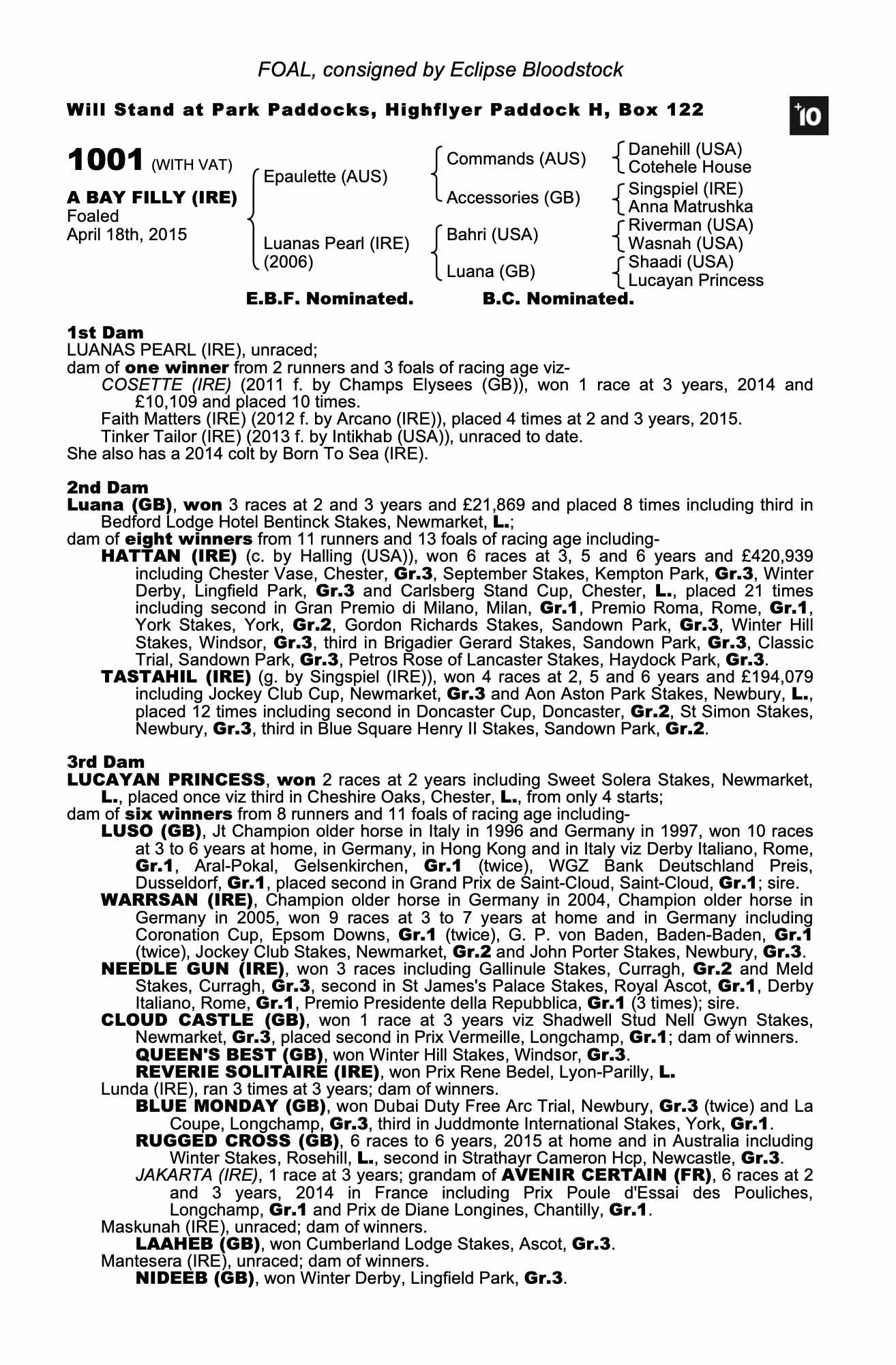 October Yearling Sale, Book 2 2015 lot 1025 C. by Born To Sea (IRE) 2014, Baroda & Colbinstown Studs, Ireland=>SackvilleDonald 70,000 gns
