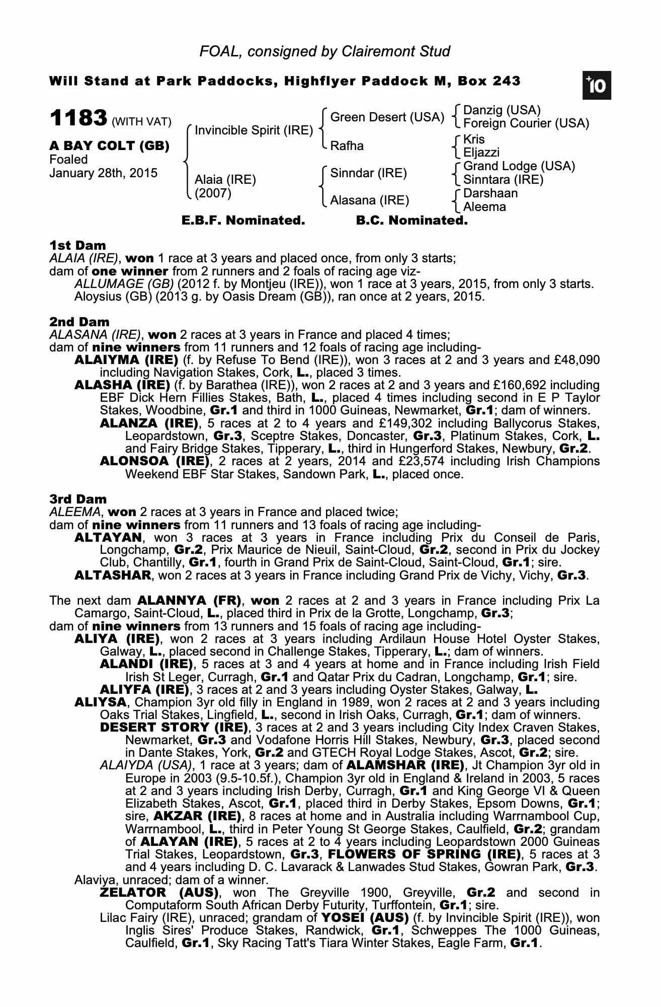 Consignor: Clairemont Stud