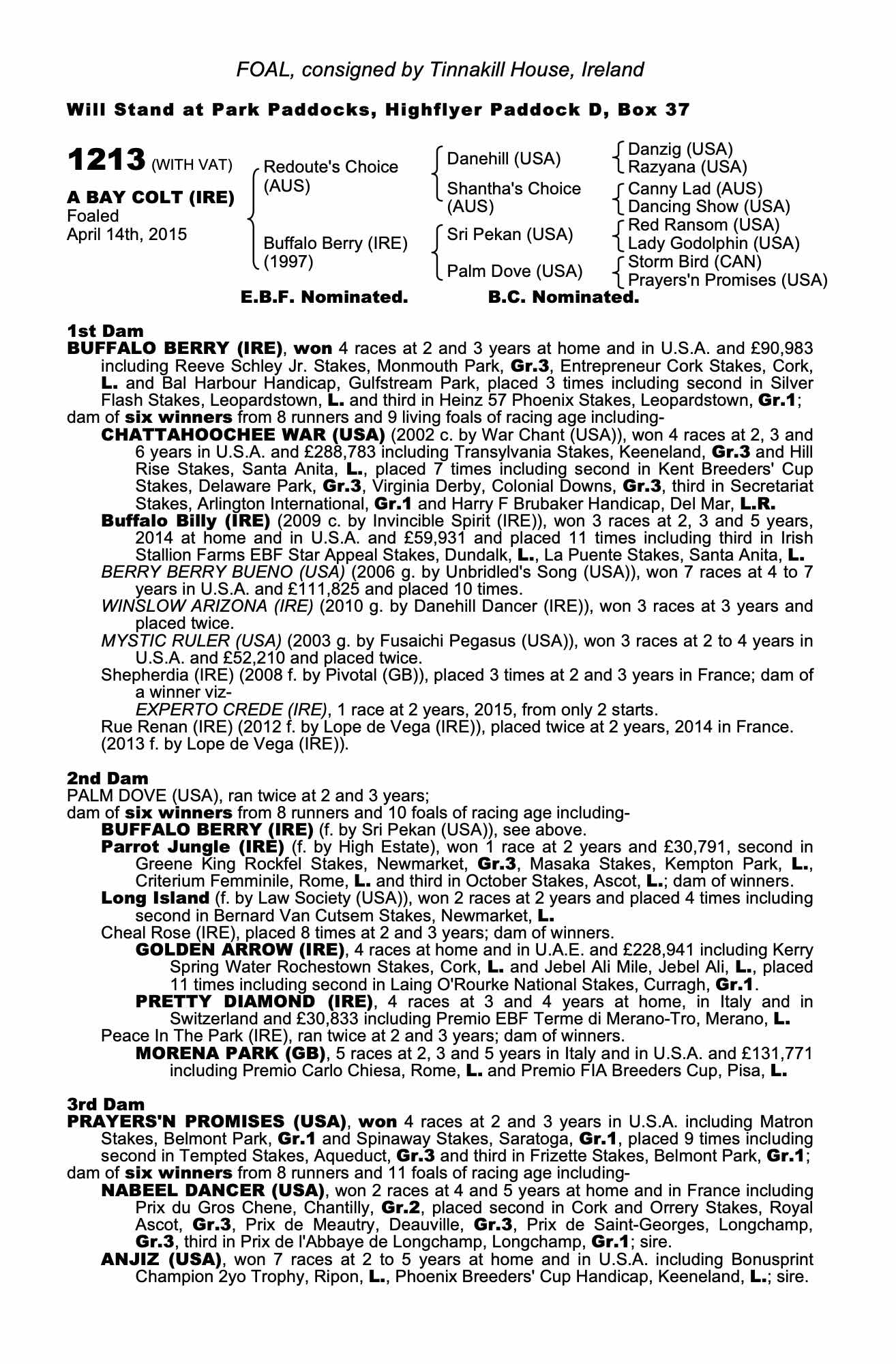 July Sale 2017 lot 226 Spanish Berry (IRE) (M. by Lope de Vega (IRE)), Baroda & Colbinstown Studs, Ireland=>Vendor 16,000 gns