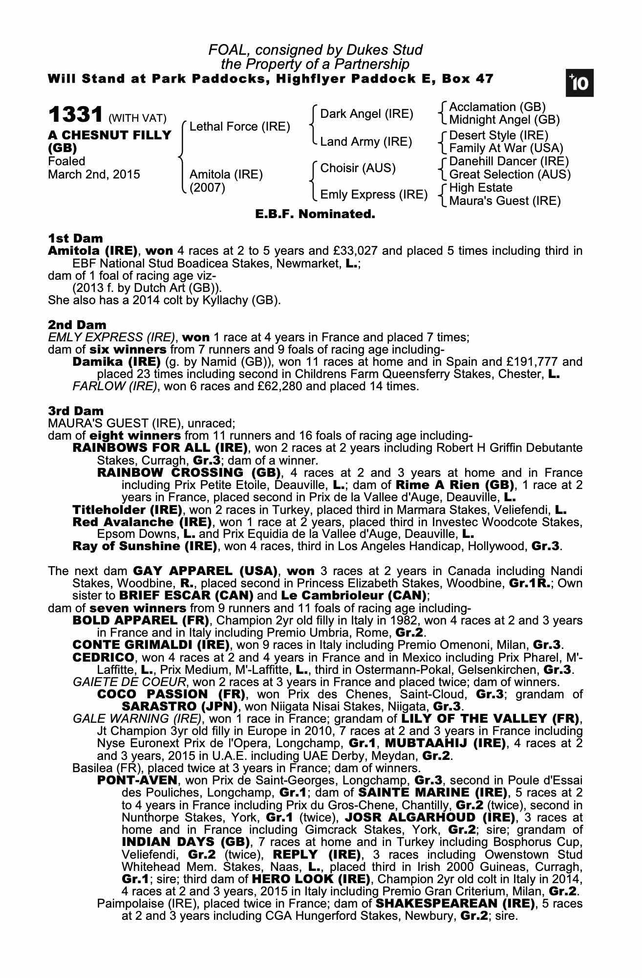 Consignor: Dukes Stud