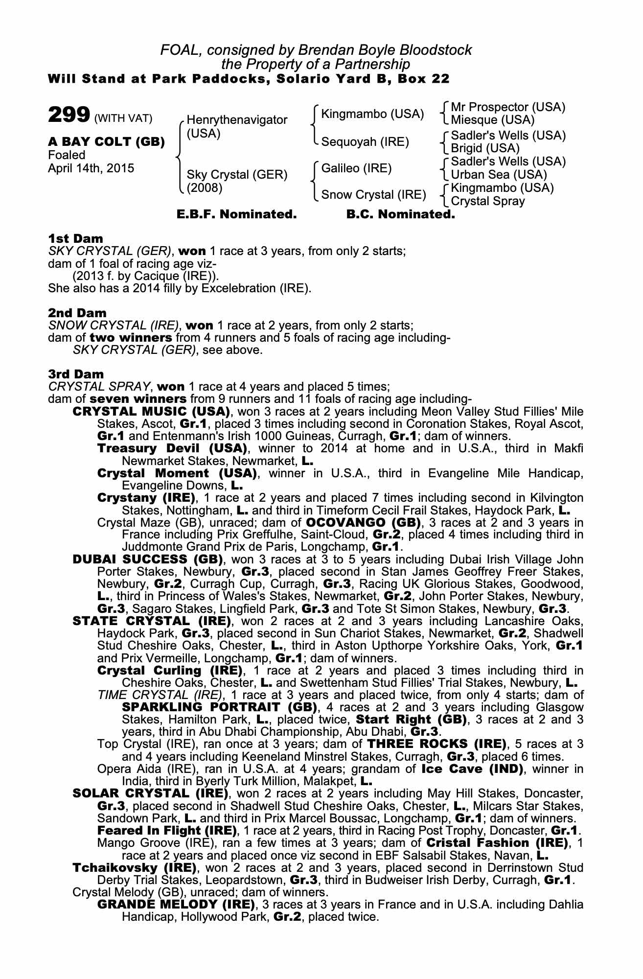 Online Charity Auction of Stallion Nominations lot 61 A Nomination to Space Traveller (GB) (H. by Bated Breath (GB)), =>Bidding Closed £5,000