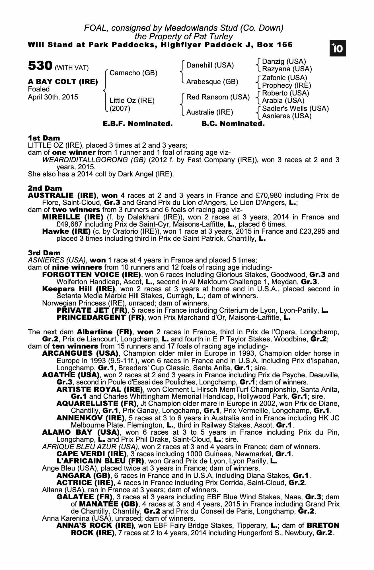 October Yearling Sale, Book 2 2015 lot 1010 C. by Dark Angel (IRE) 2014, Keith Harte (Agent)=>Edward Lynam 45,000 gns