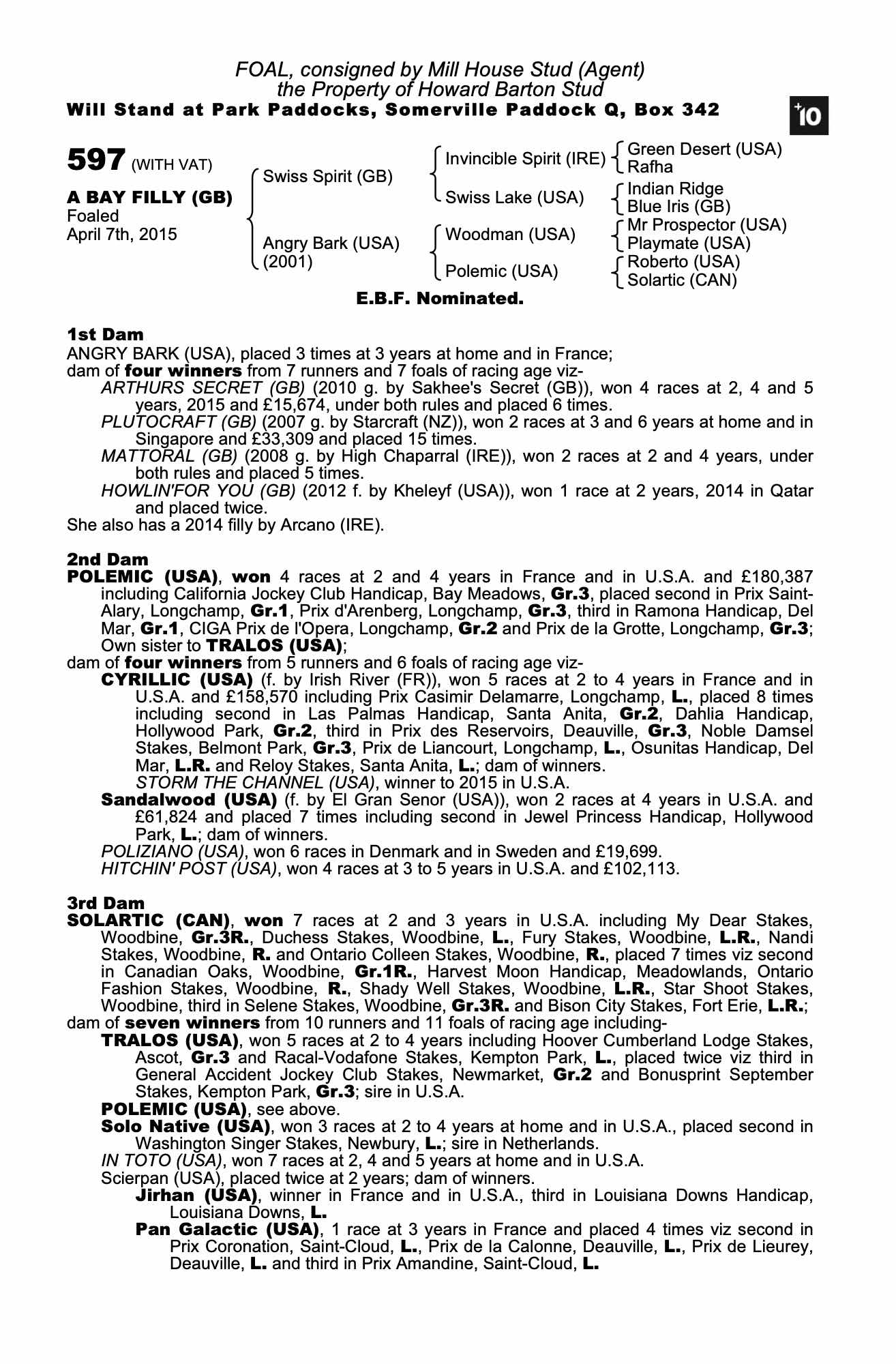 Consignor: Mill House Stud (Agent)
