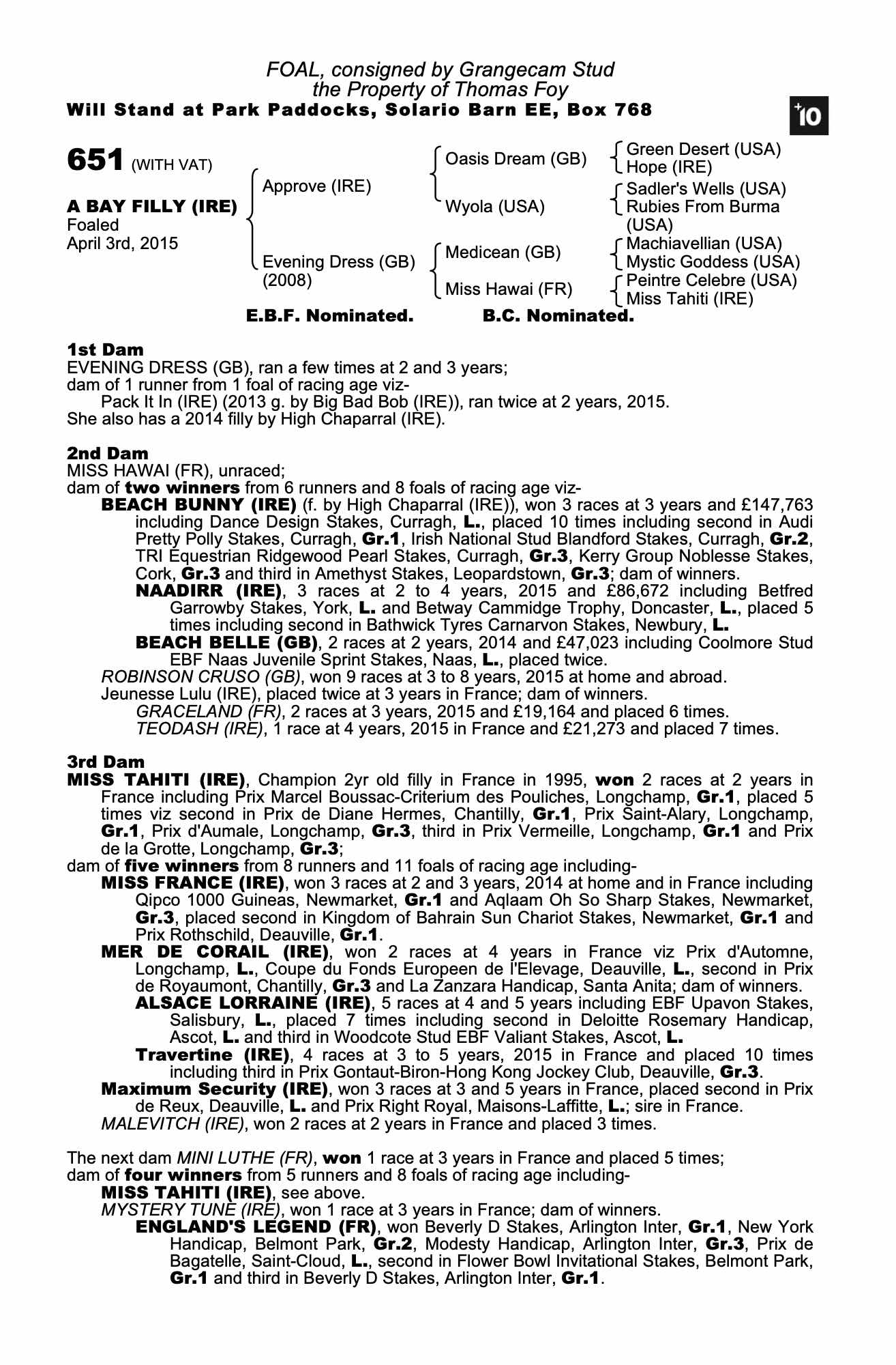 Flat Foal & Breeding Stock Sale 2018 lot 74 F. by Alhebayeb (IRE) 2018, Grangecam Stud=>Lot Not Sold