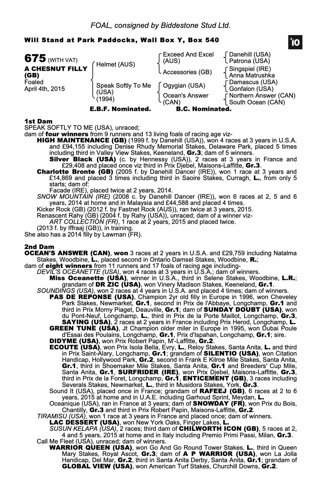 Consignor: Biddestone Stud Ltd.