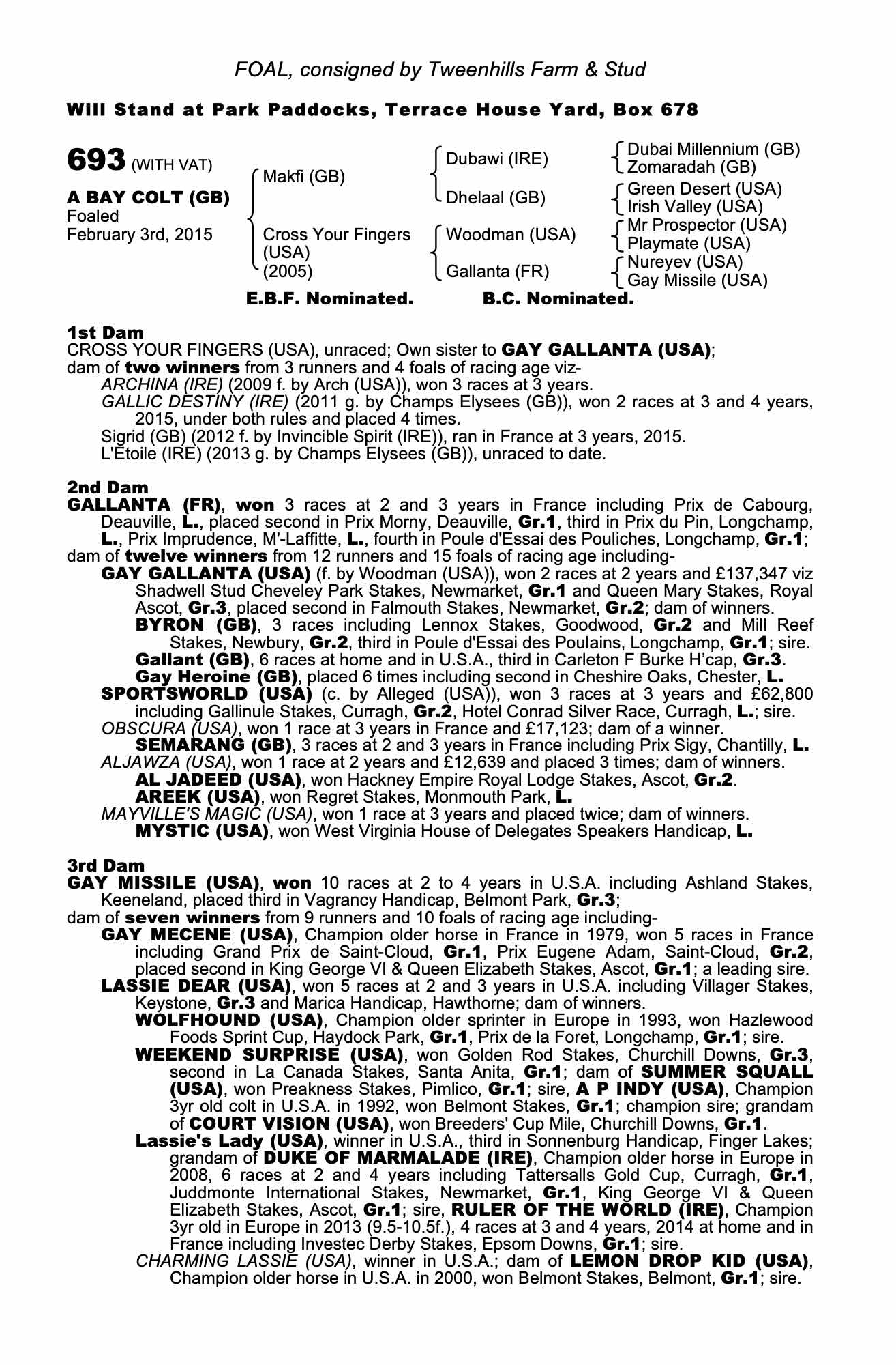 December Yearling Sale 2014 lot 162 C. by Champs Elysees (GB) 2013, Voute Sales Ltd. (Agent)=>Mrs A Skiffington 36,000 gns