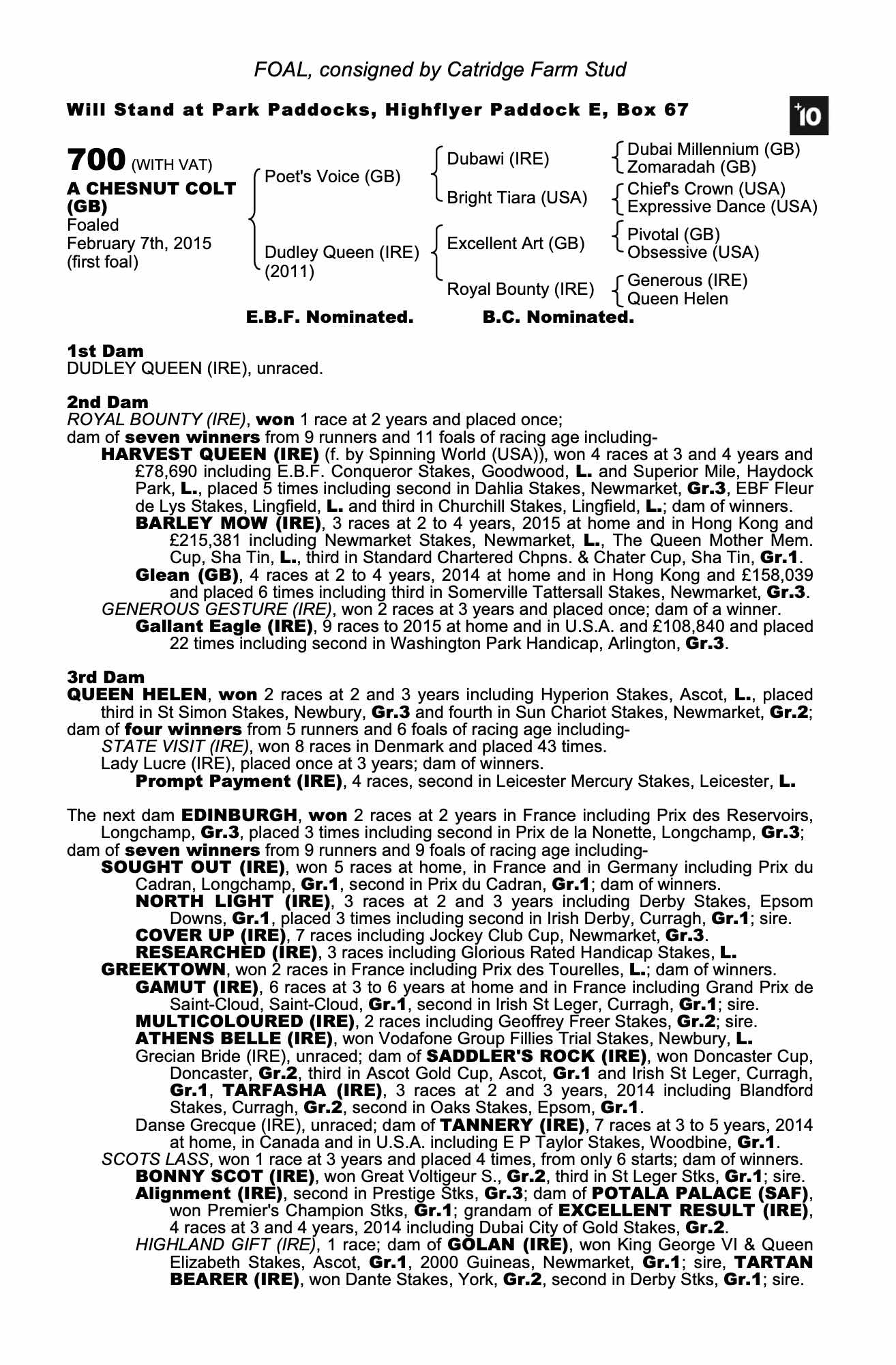 Consignor: Catridge Farm Stud