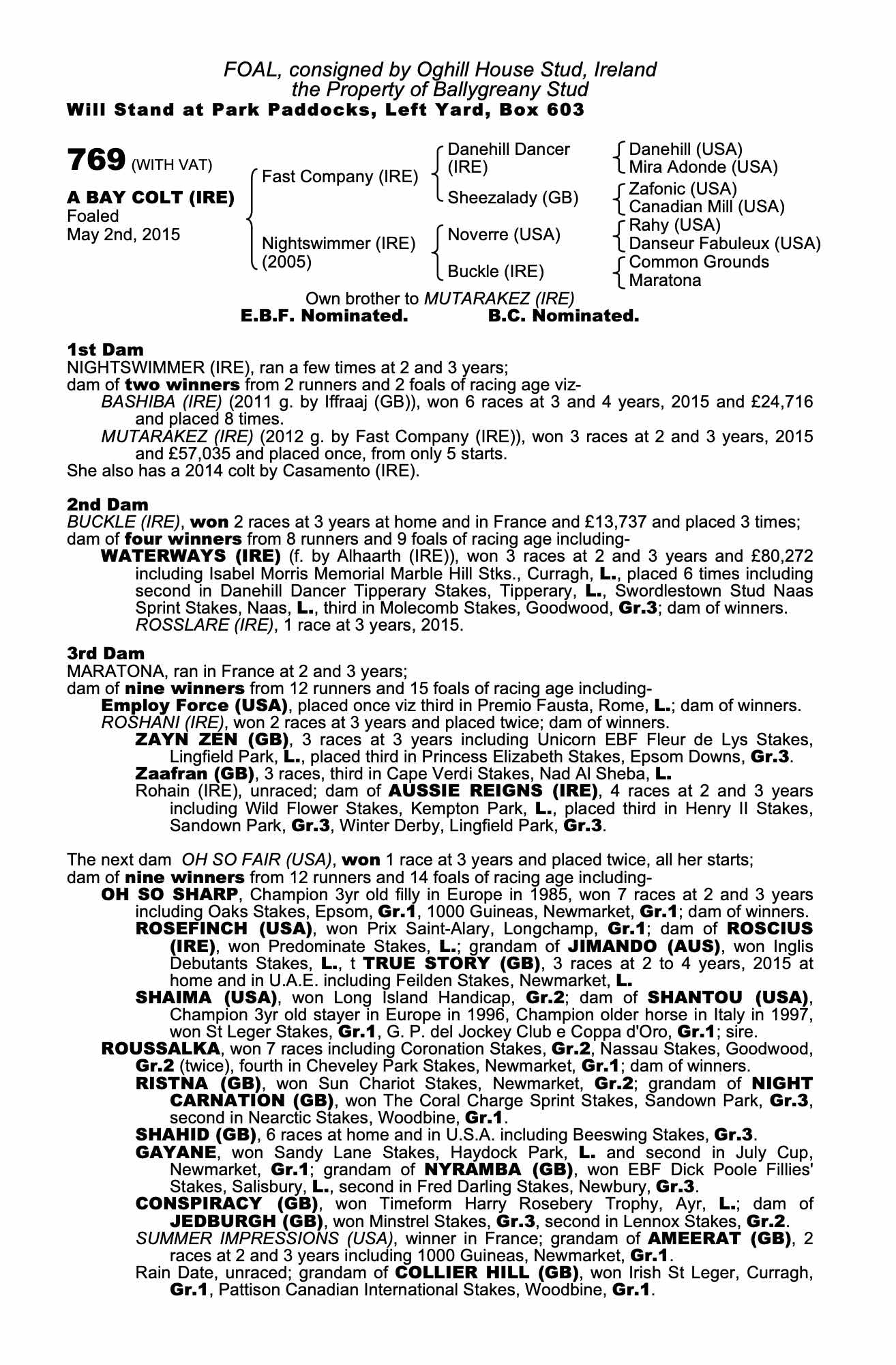Consignor: Oghill House Stud, Ireland