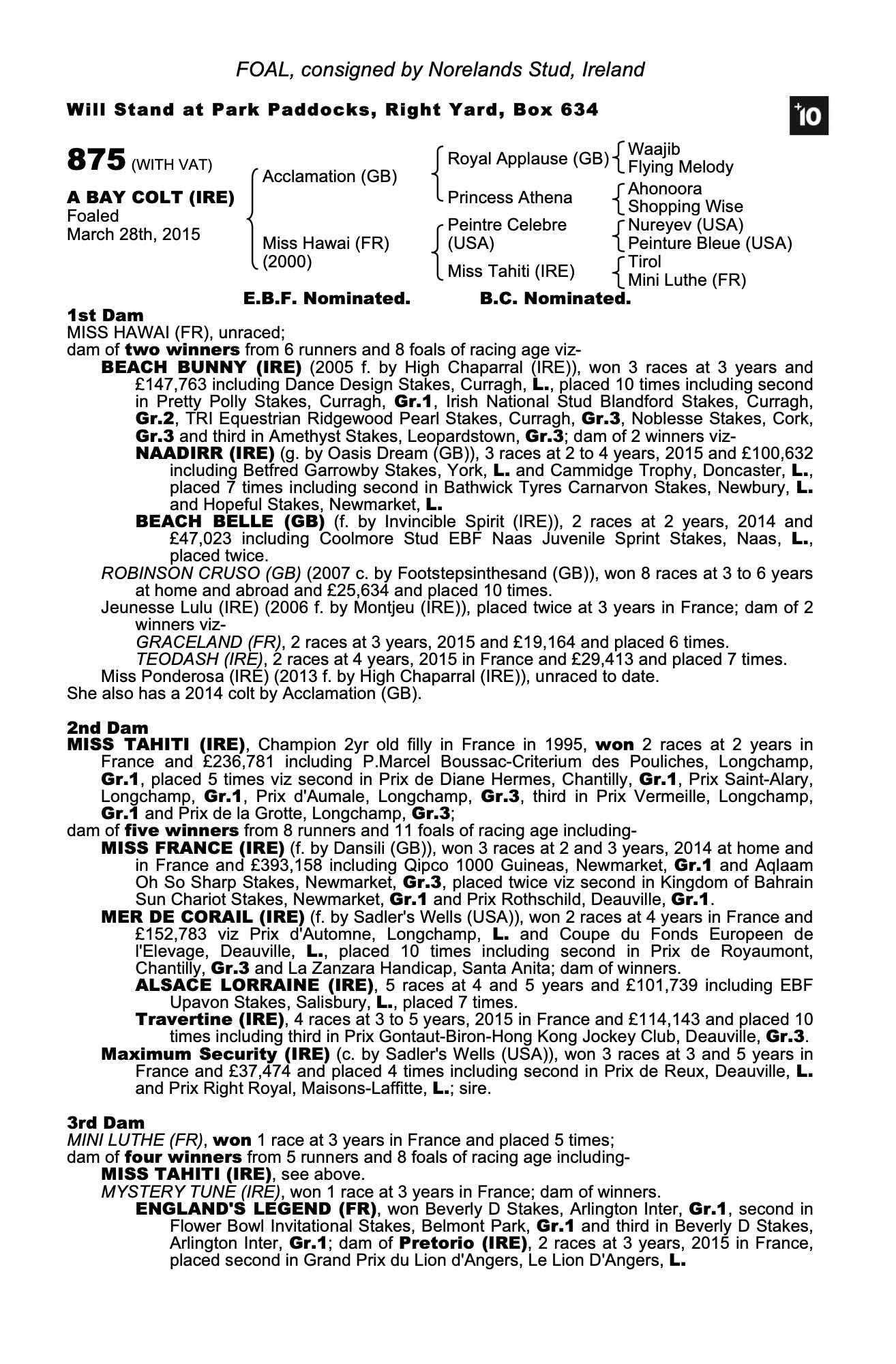 Consignor: Norelands Stud, Ireland