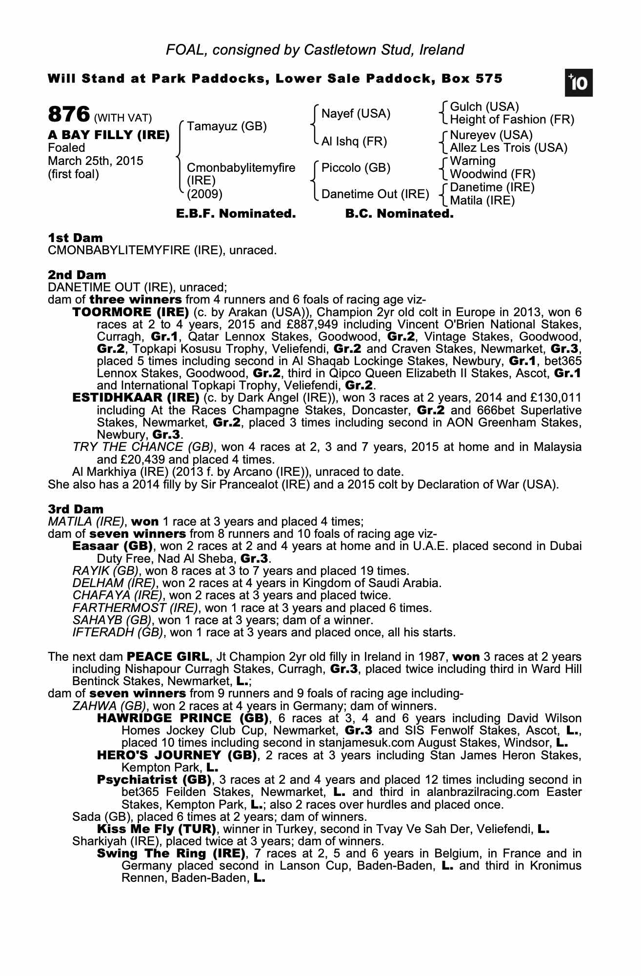 September Yearling Sale 2018 lot 313 F. by Fastnet Rock (AUS) 2017, Castledillon Stud (Agent)=>Lot Not Sold €14,500