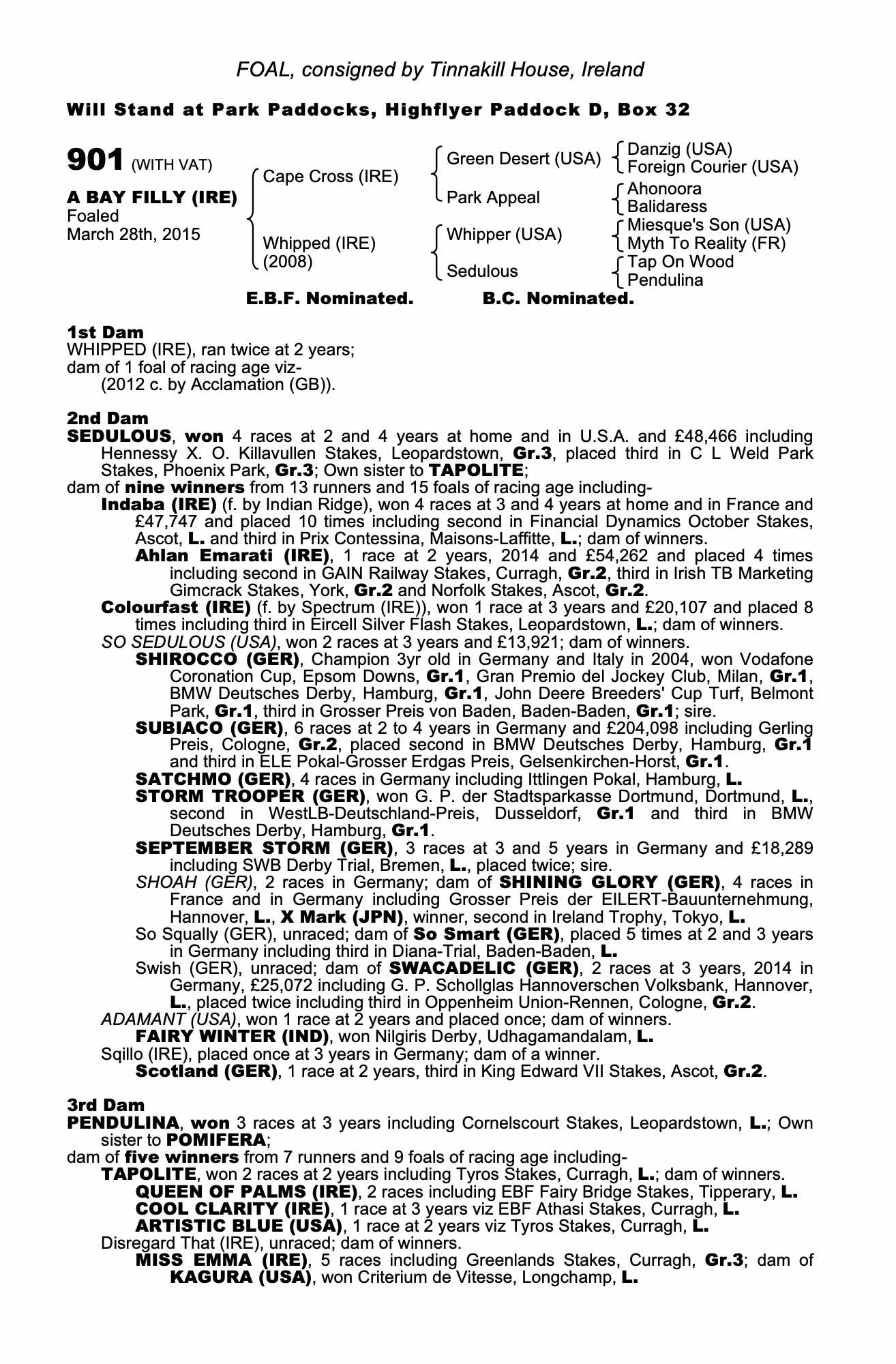 Consignor: Tinnakill House, Ireland