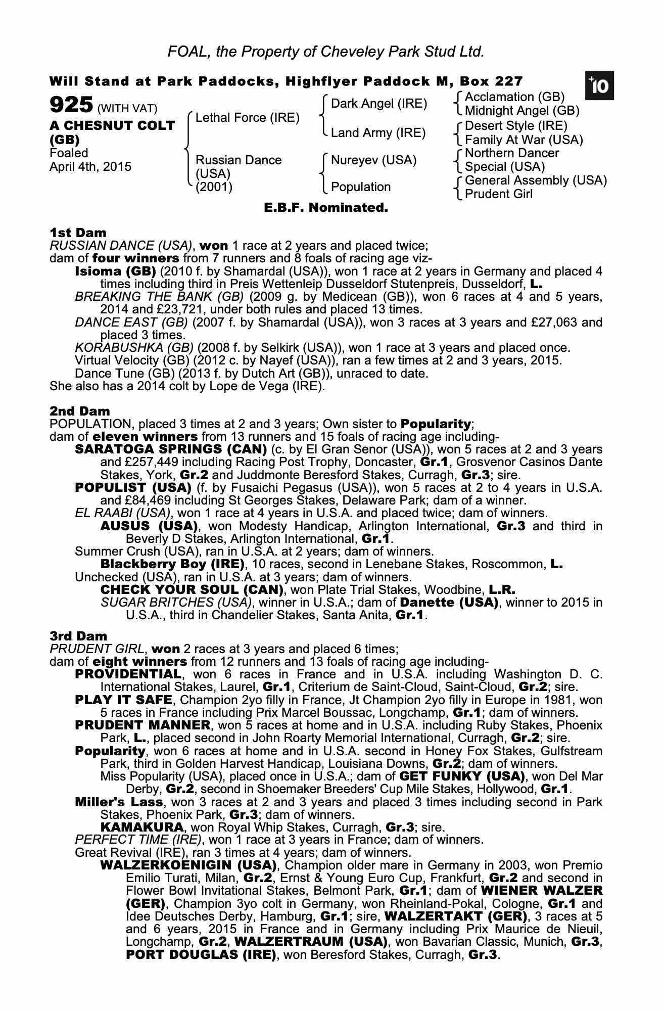 December Yearling Sale 2015 lot 157 C. by Lope de Vega (IRE) 2014, Cheveley Park Stud Ltd.=>The Channel Consignment 36,000 gns