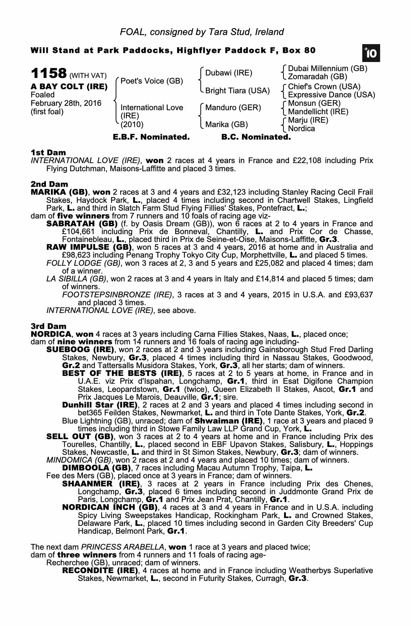 Consignor: Tara Stud, Ireland
