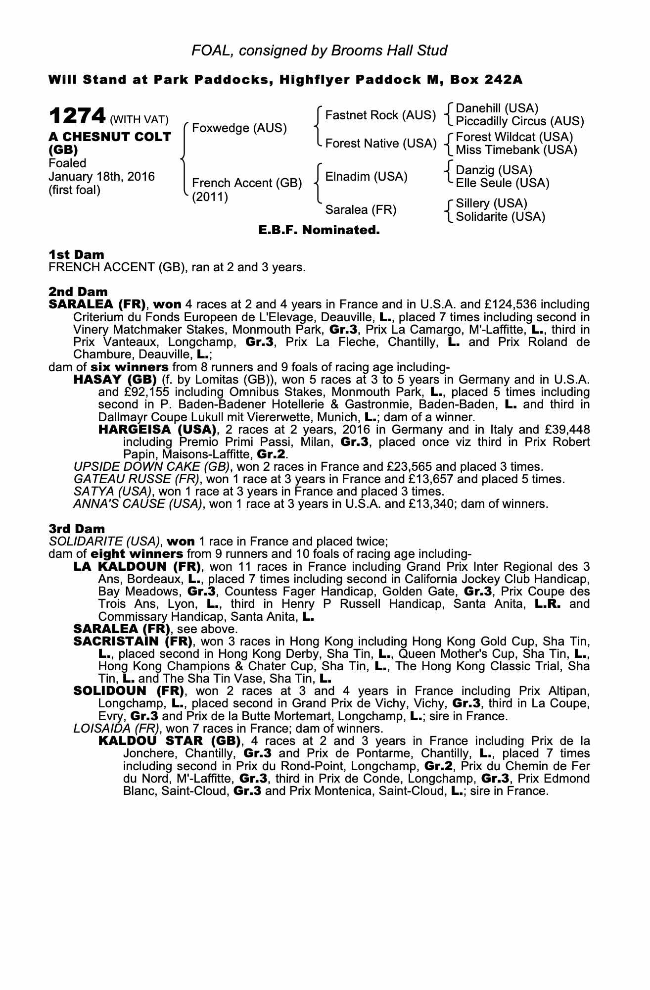 Consignor: Brooms Hall Stud