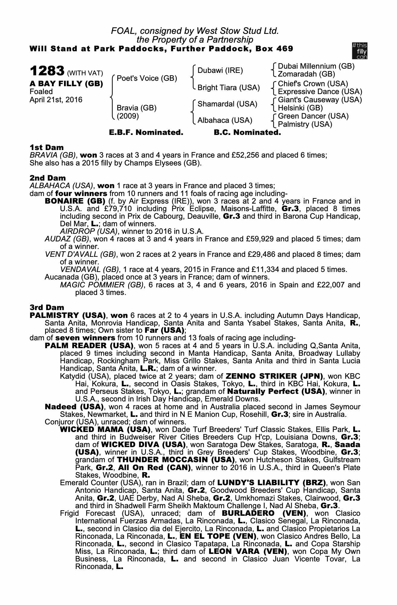 February Sale 2017 lot 112 F. by Champs Elysees (GB) 2015, West Stow Stud Ltd.=>Abu Rkaiek Abd Halil 3,500 gns