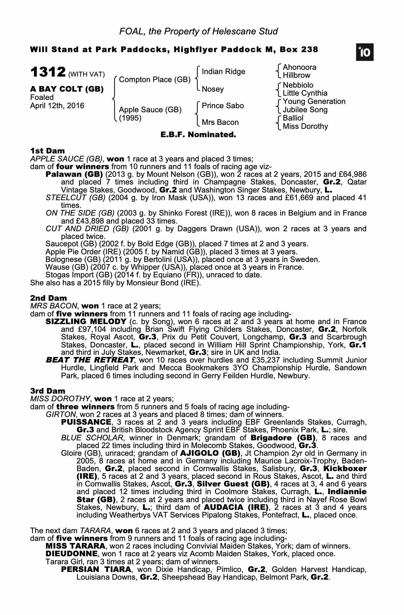 Consignor: Helescane Stud