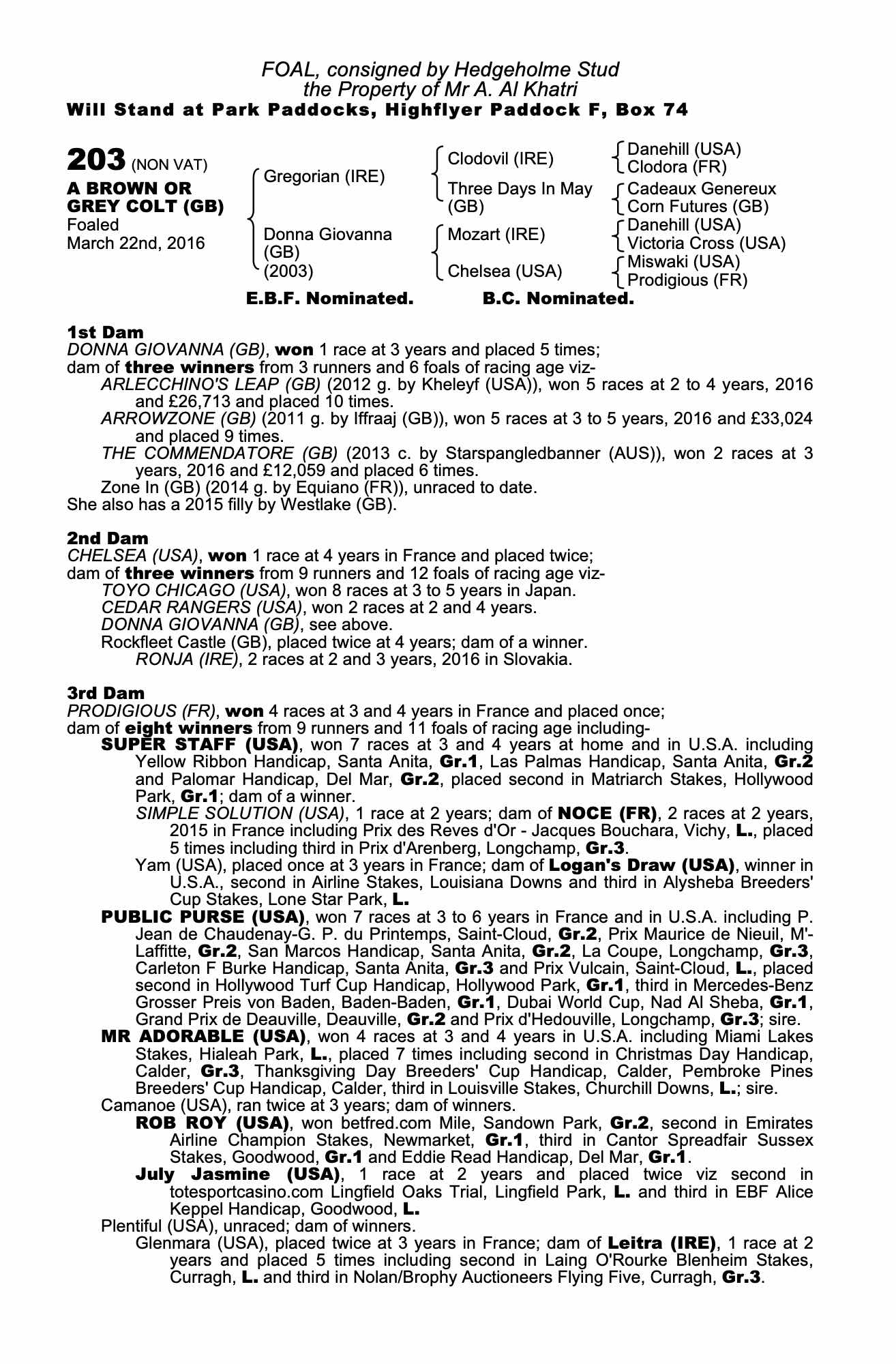 December Foal Sale 2017 lot 1284 F. by Toronado (IRE) 2017, Grove Farm Stud, Newmarket=>Lot Not Sold 7,500 gns