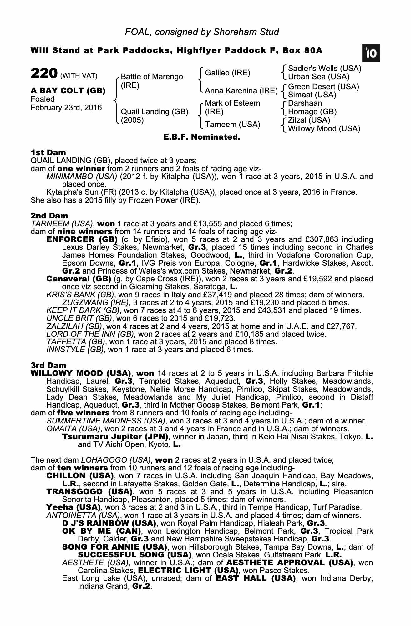 Consignor: Shoreham Stud