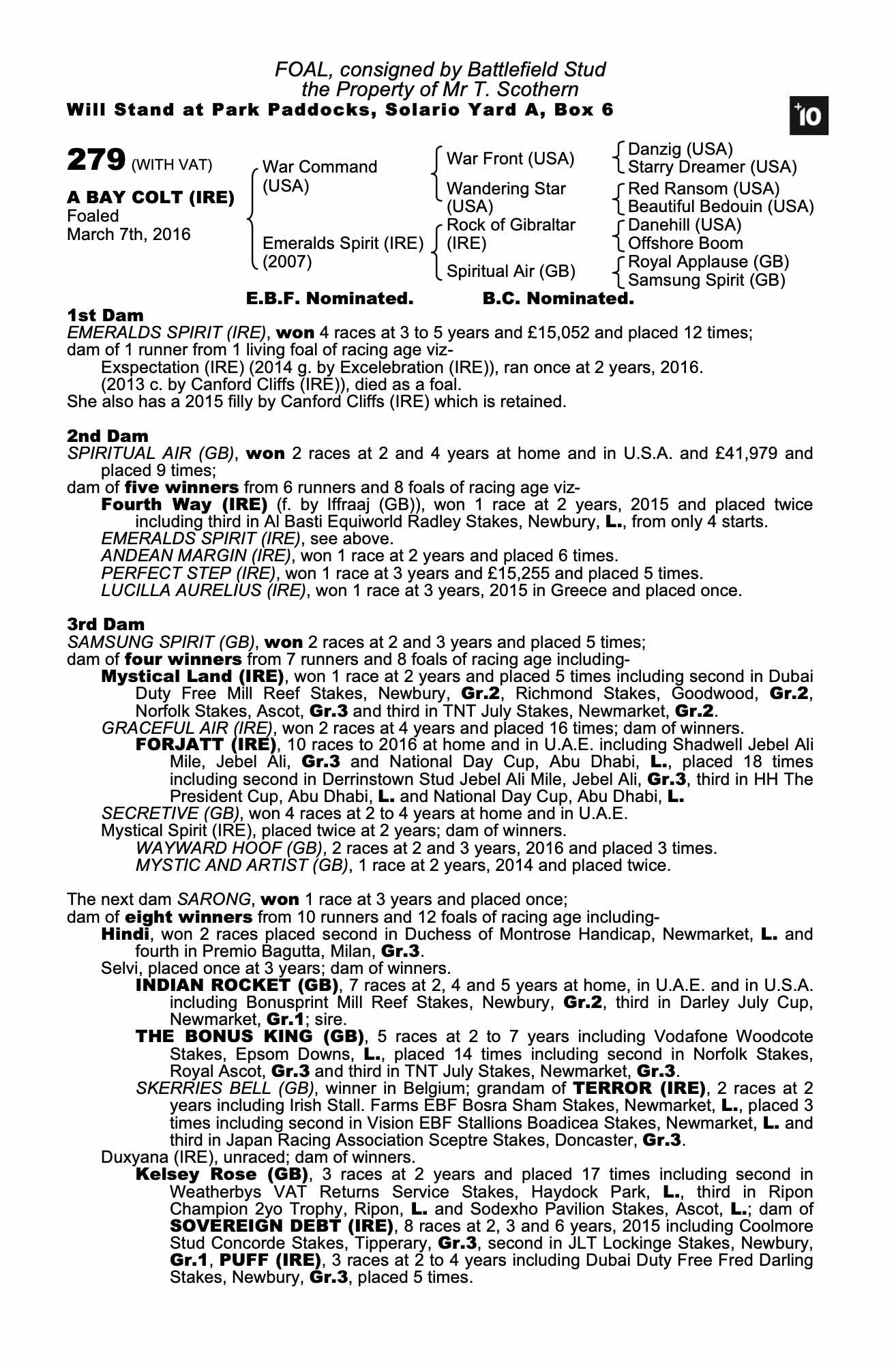 October Yearling Sale, Book 3 2017 lot 1603, Battlefield Stud=>Vendor 16,000 gns