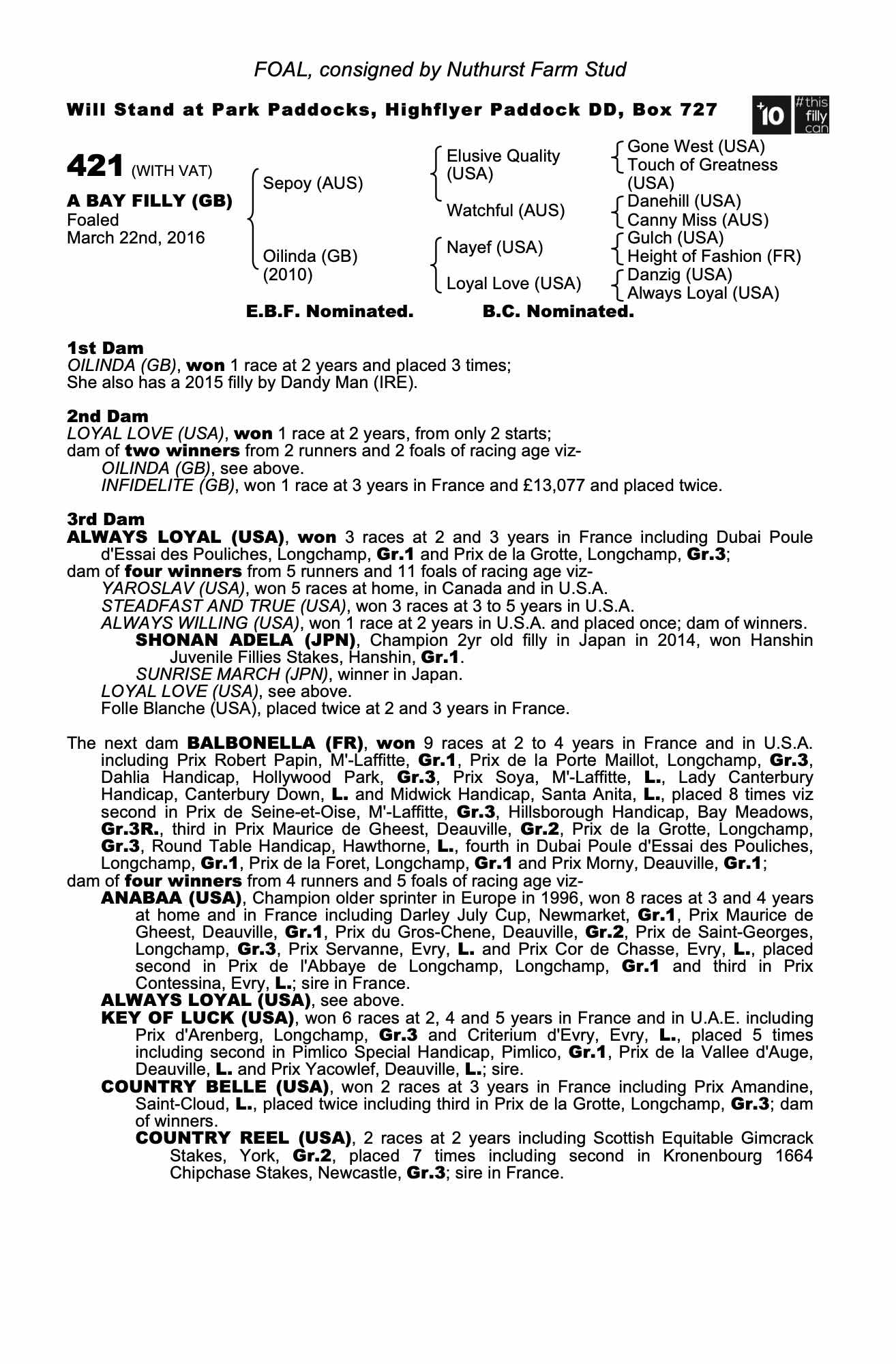 December Foal Sale 2018 lot 363 F. by Adaay (IRE) 2018, Nuthurst Farm Stud=>GB Turnbull 22,000 gns