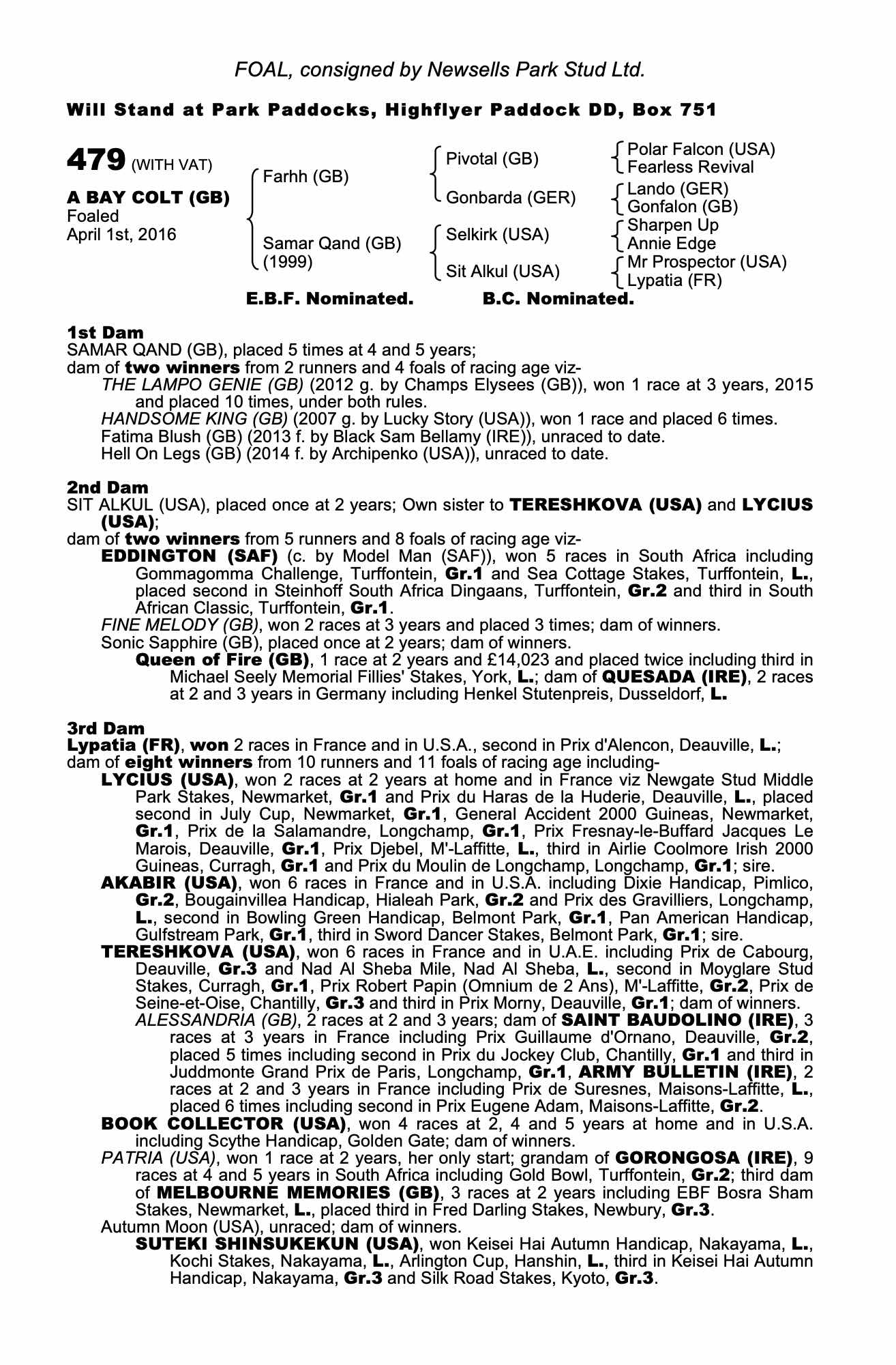 December Foal Sale 2012 lot 426 C. by Champs Elysees (GB) 2012, Jamie Railton, Agent=>Emerald Bloodstock 7,000 gns