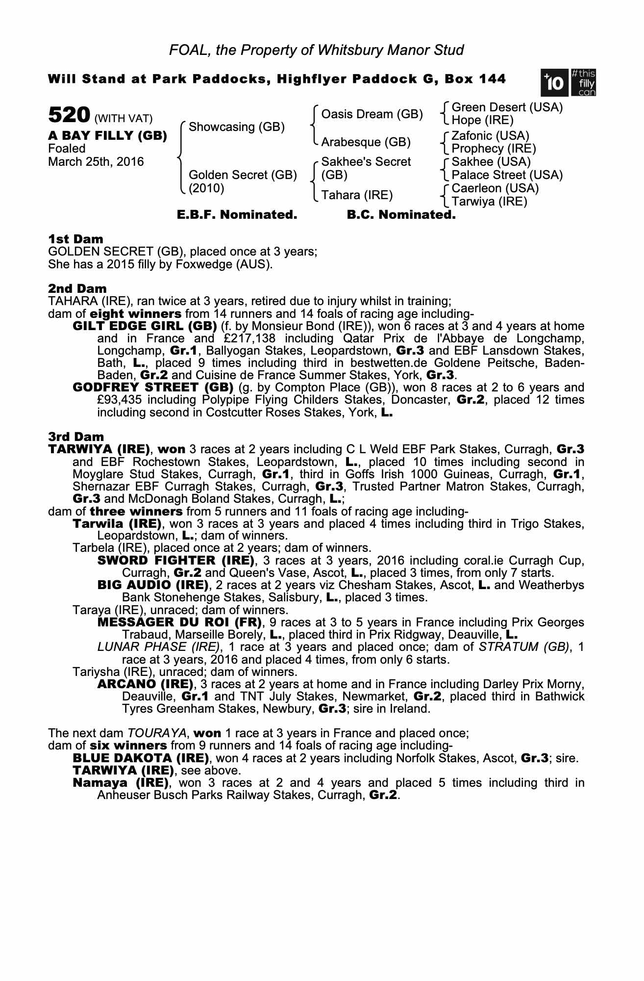 Ascot Yearling Sale 2018 lot 99 F. by Swiss Spirit (GB) 2017, Belmont Stud, Ireland=>R P Brisland £2,000