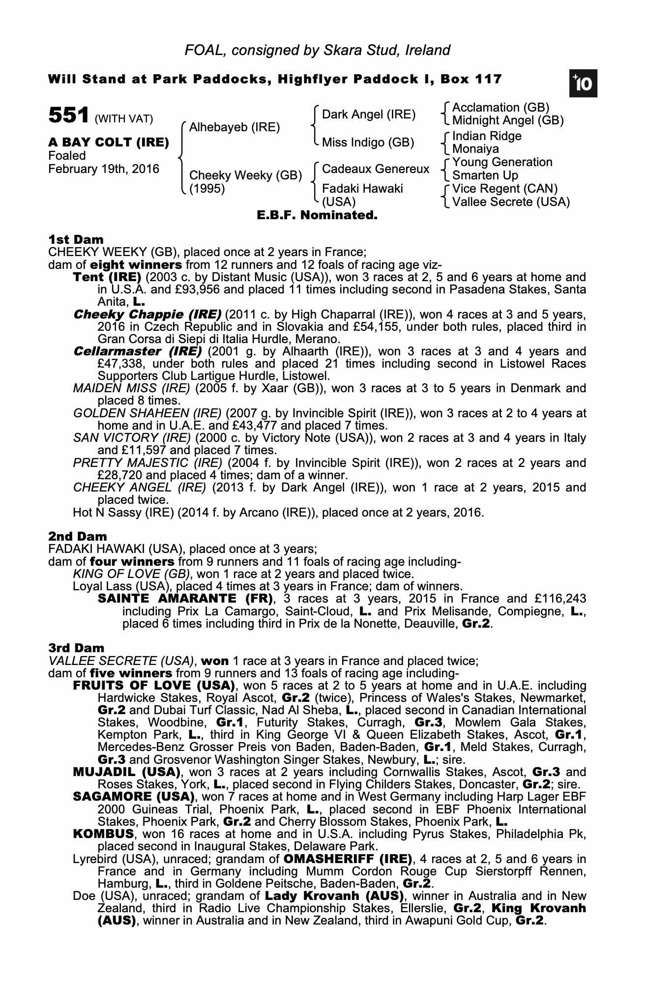 Consignor: Skara Stud, Ireland